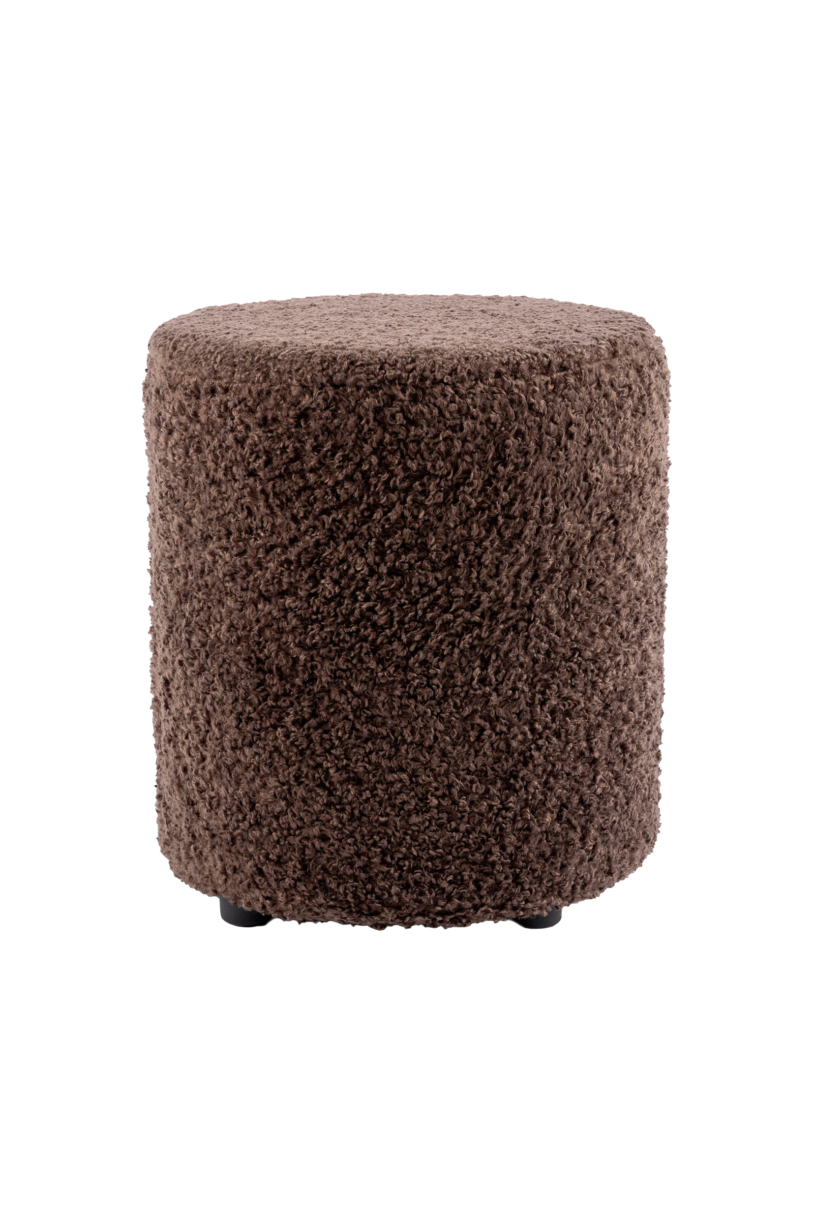 Rund ottoman klädd i mjuk lammpälsimitation. Snygg och mysig, perfekt som extra sittplats eller som dekorativ accent.