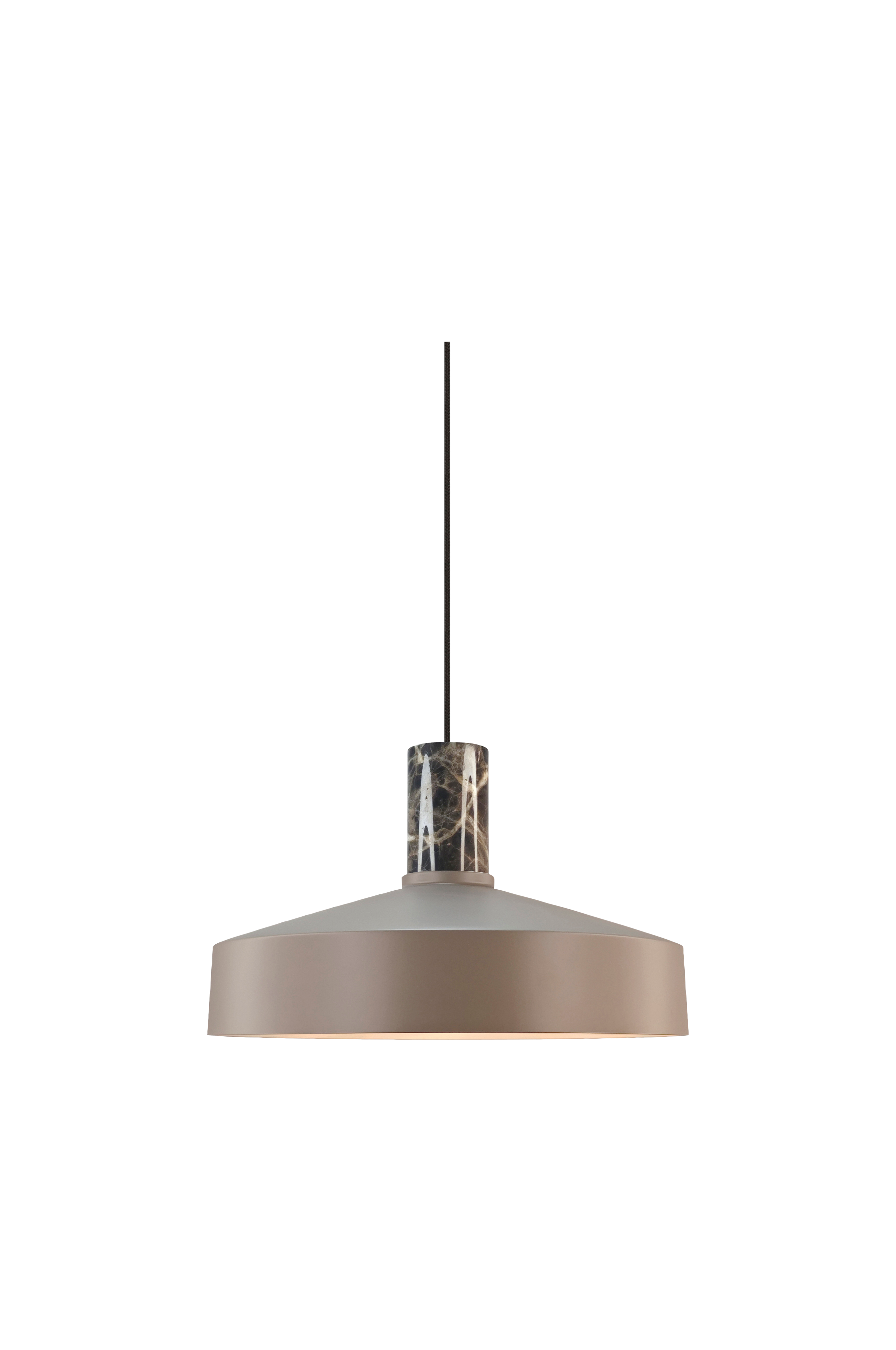 Elvas-pendeln har en modern och minimalistisk design med en metallskärm som kompletteras av den eleganta marmorupphängningen. Elvas kommer att se vacker ut ovanför matbordet eller bredvid din soffa eller fåtölj.
