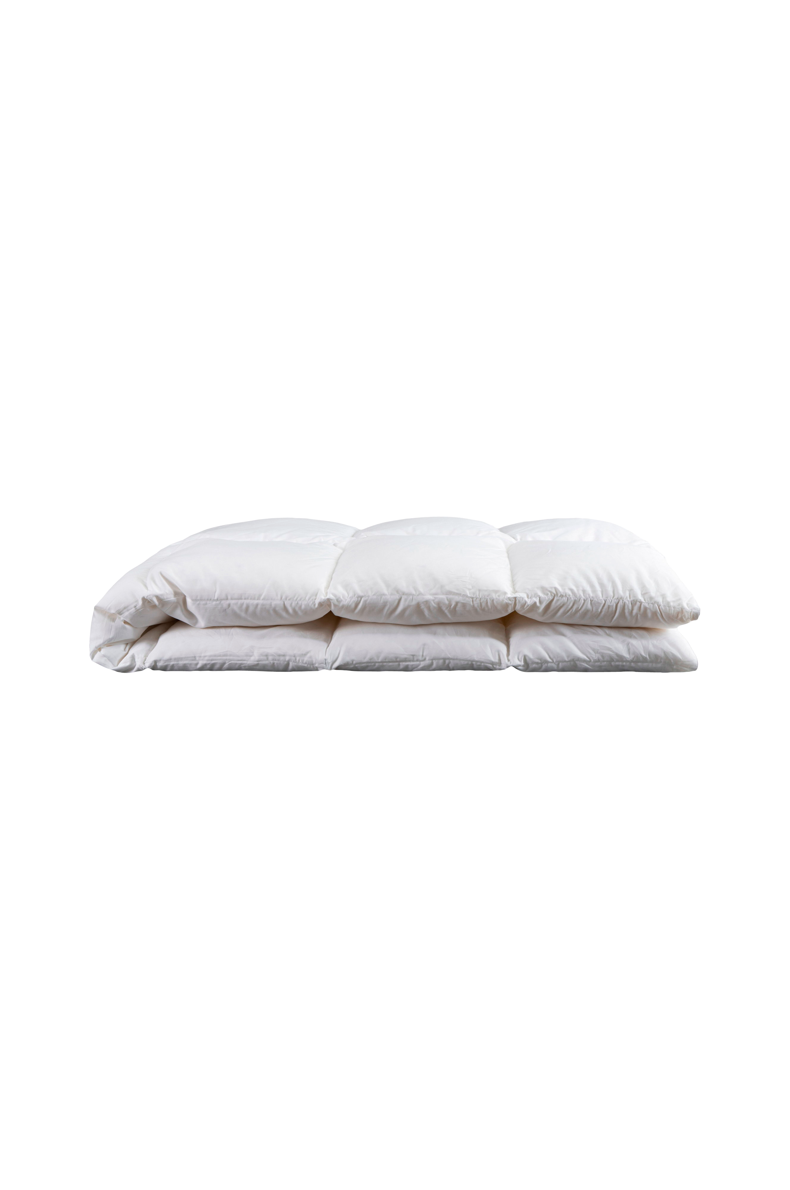Ett året-runt-täcke du kan se fram emot varje kväll – oavsett säsong. Den perfekta balansen mellan värme, lätthet och andningsförmåga. Fyllt med enbart europeisk anddun som omsluter kroppen mjukt utan att kännas tungt, och ger en varm och ombonad komfort som passar lika bra sommar som vinter. Fyllningen består av 100 % europeisk anddun som ger ett lätt täcke med bra volymkänsla och naturlig värmeisolering. Överdraget i TC395 är gjort av 50 % högkvalitativ bomullsbatist och 50 % TENCEL™ – en tätvävd, silkeslen blandning som ger andningsförmåga, temperaturreglering och effektiv fukttransport. Det håller dig torr och bekväm – hela natten, hela året. Bärighet: 800 Cuin.