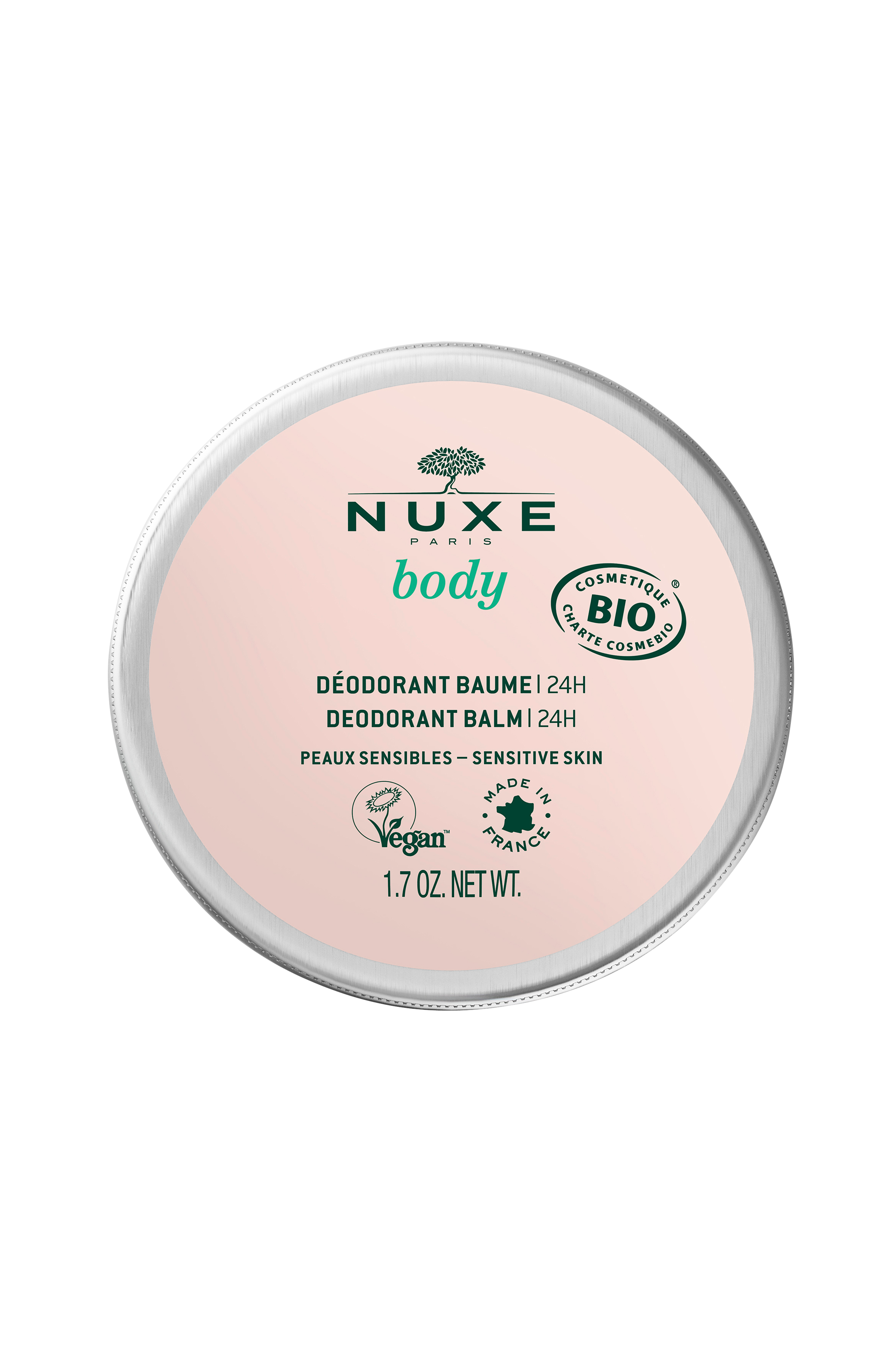 Body Sensitive Skin Deodorant Balm från NUXE är särskilt framtagen för känslig hud och kombinerar 24 timmars effektivitet med hudvårdande egenskaper. Formulan innehåller absorberande, botaniskt puder och ekologisk, botanisk olja. Den pudriga balmtexturen ger en torr finish och appliceras enkelt med fingertopparna, och huden omfamnas med näring och komfort. Deodoranten har en lugnande doft av söt apelsinblomma.