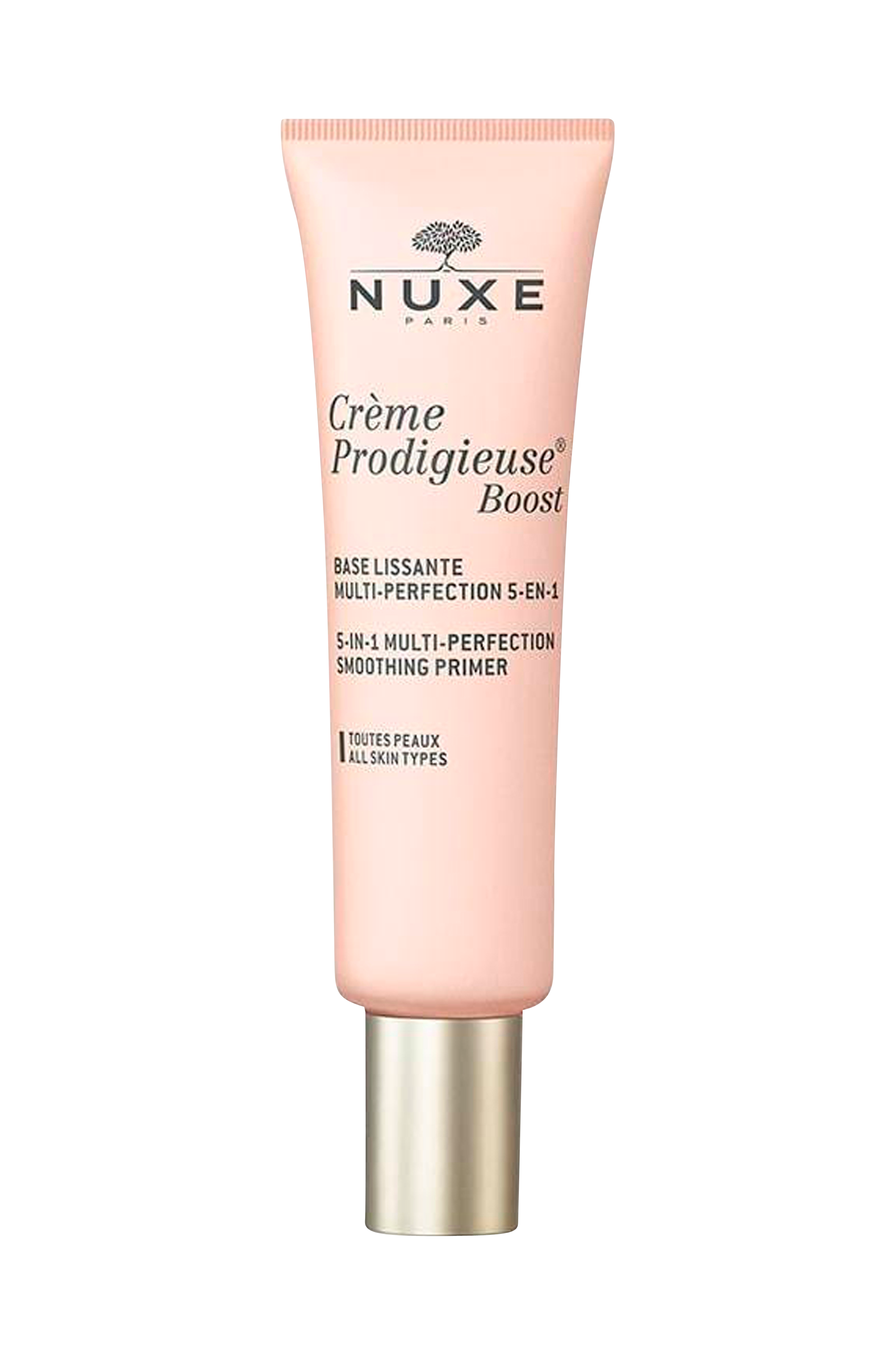 2: Applicera sedan Crème Prodigieuse Boost Smoothing Primer jämnt över ansiktet.