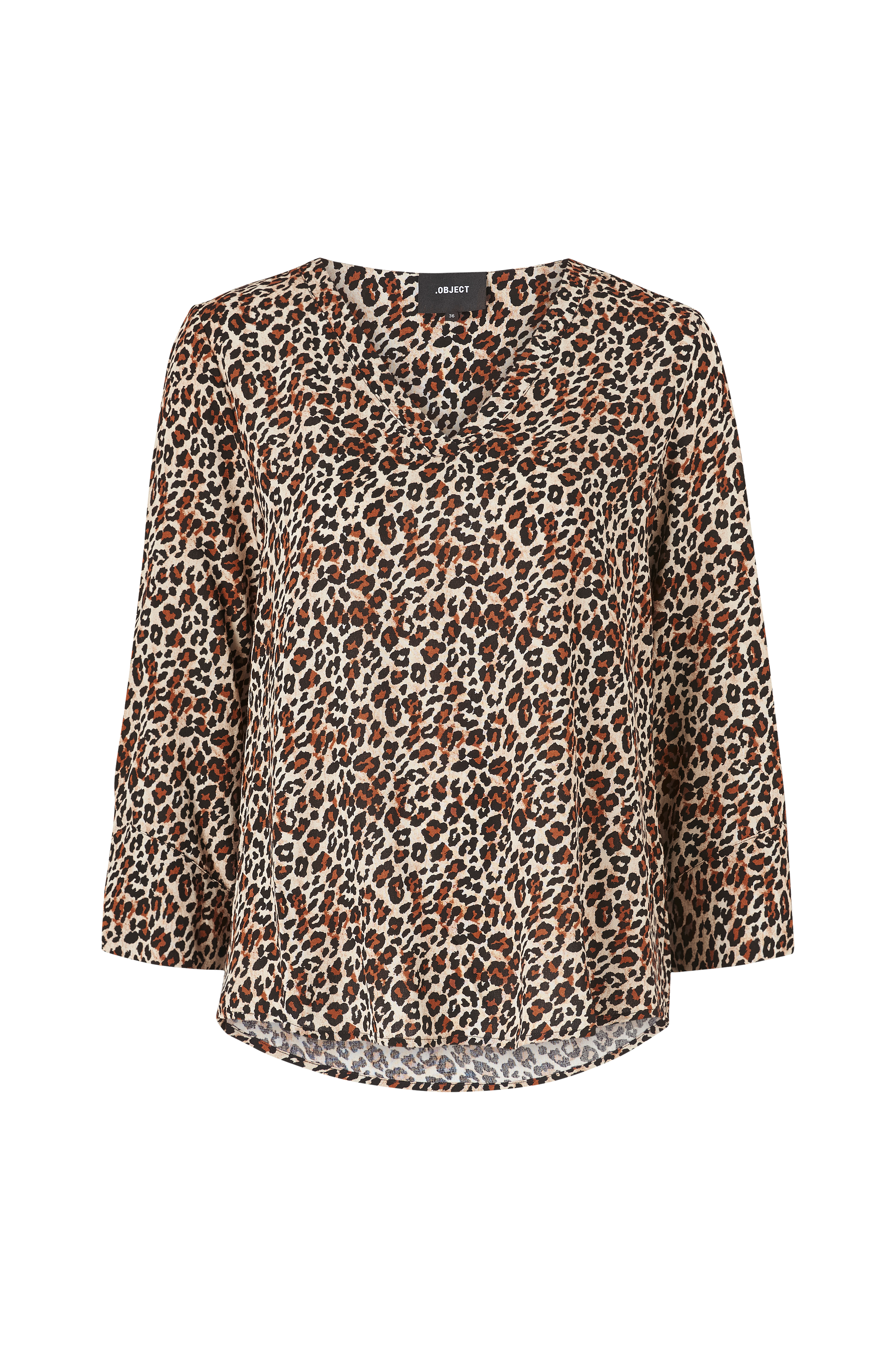 Blus objBay 3/4 Top från Object är i vävt tyg med tryckt djurmönster. V-ringad modell med trekvartsärm och rundad kant nertill.