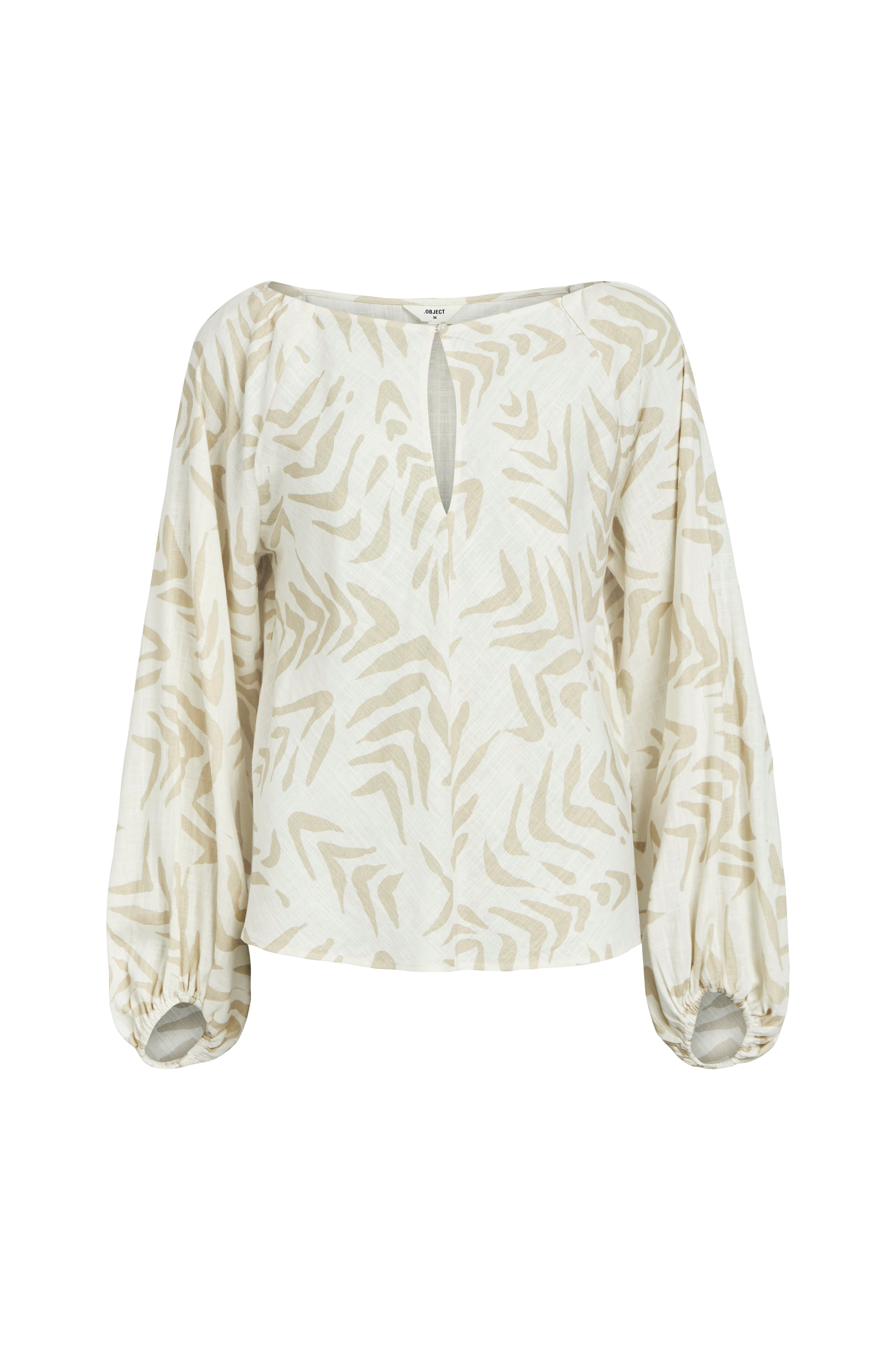 • Blus i linnemix• Rund halsringning• Sprund med knapp i nacken• Långa ballongärmar med resår i ärmsluten