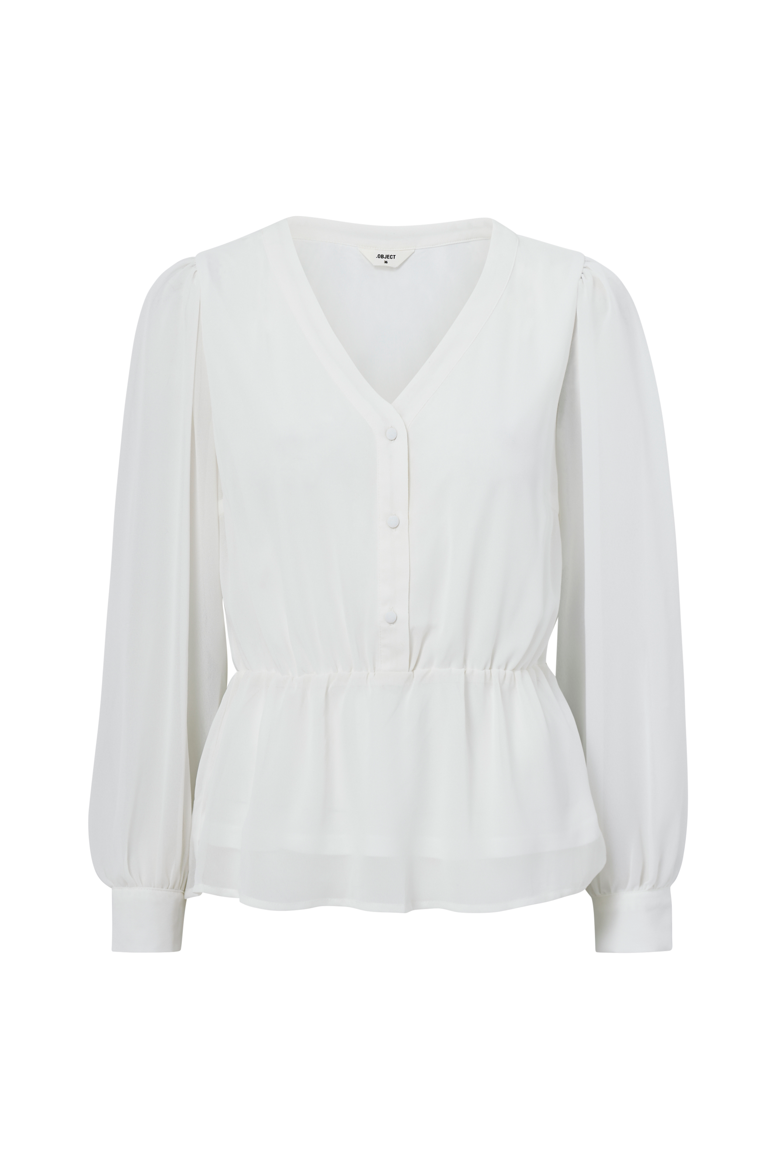 • Peplumdesign • V-ringning med textilklädda knappar fram • Långa, transparenta ärmar med manschett • Gjord av chiffong • Foder i trikå • Produkten innehåller återvunnet material som har tagits tillvara för att minska mängden avfall, samtidigt som nya resurser inte har förbrukats.