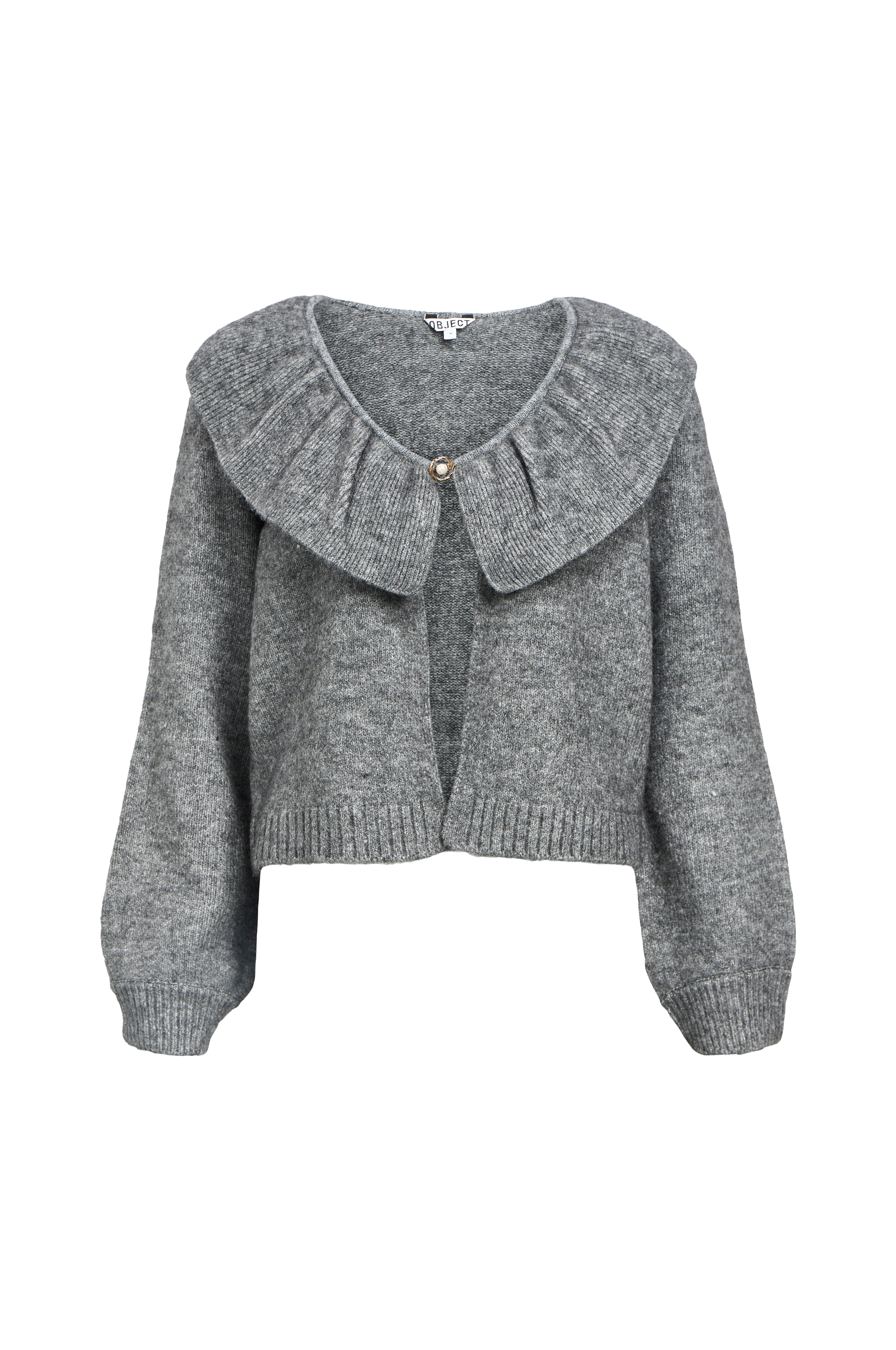 • Mjuk, stickad cardigan• V-ringad hals med bred volangkrage• Dekorativ hysk- och hakstängning upptill• Långa, vida ärmar med ribbmuddar i ärmsluten• Ribbstickning i nederkanten