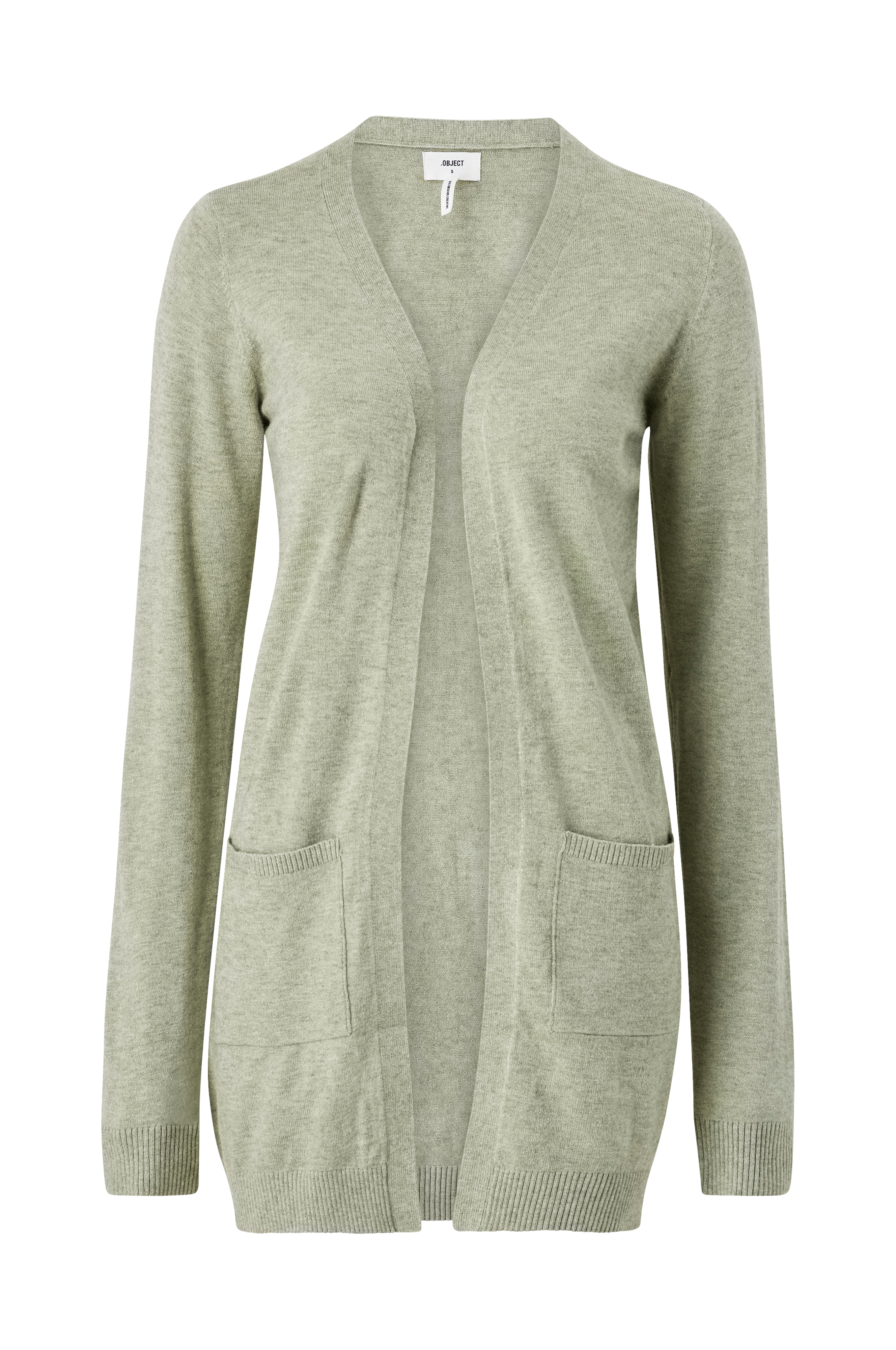 Cardigan objThess L/S från Object i öppen, finstickad modell med fickor fram. Ribbstickad nederkant, ärmslut och fickkant.