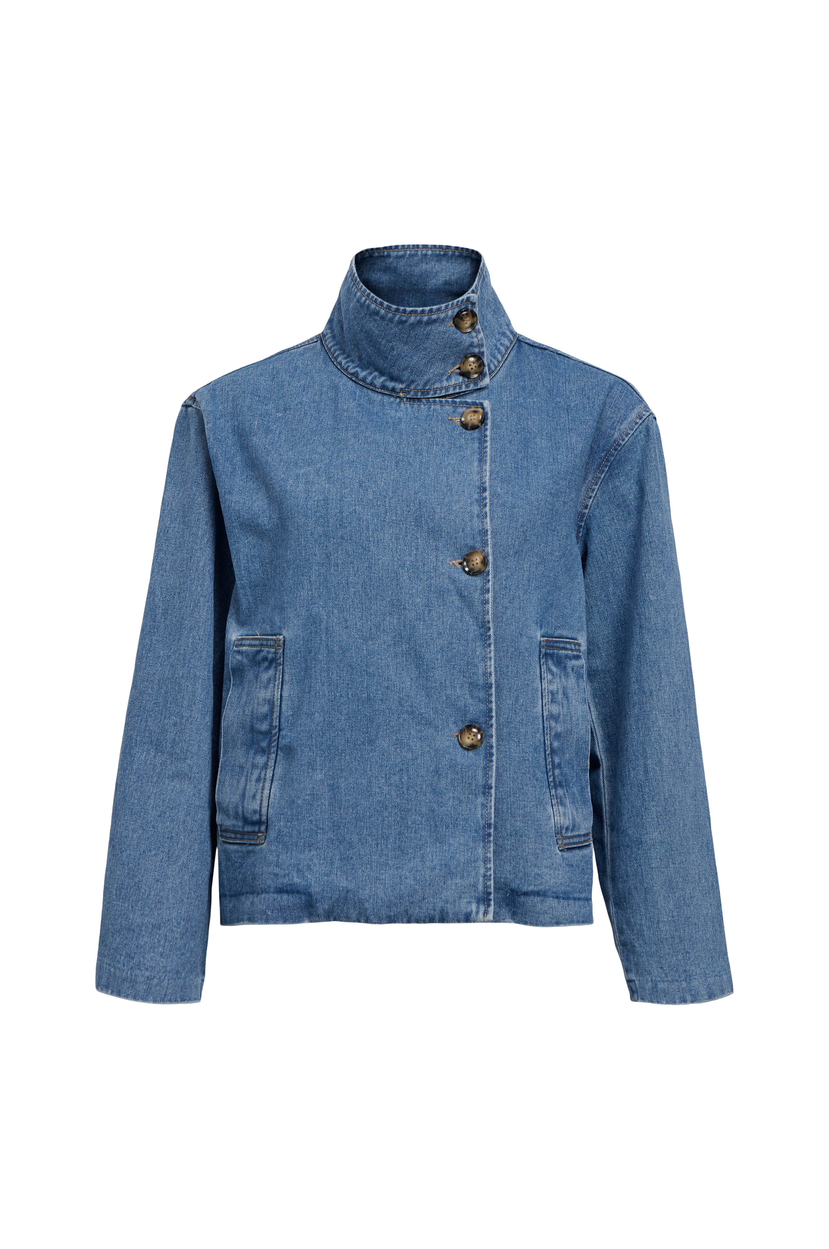 • Hög krage med två knappar• Knappstängning• Två fickor• Denim utan stretch• Längd: 58 cm i storlek S