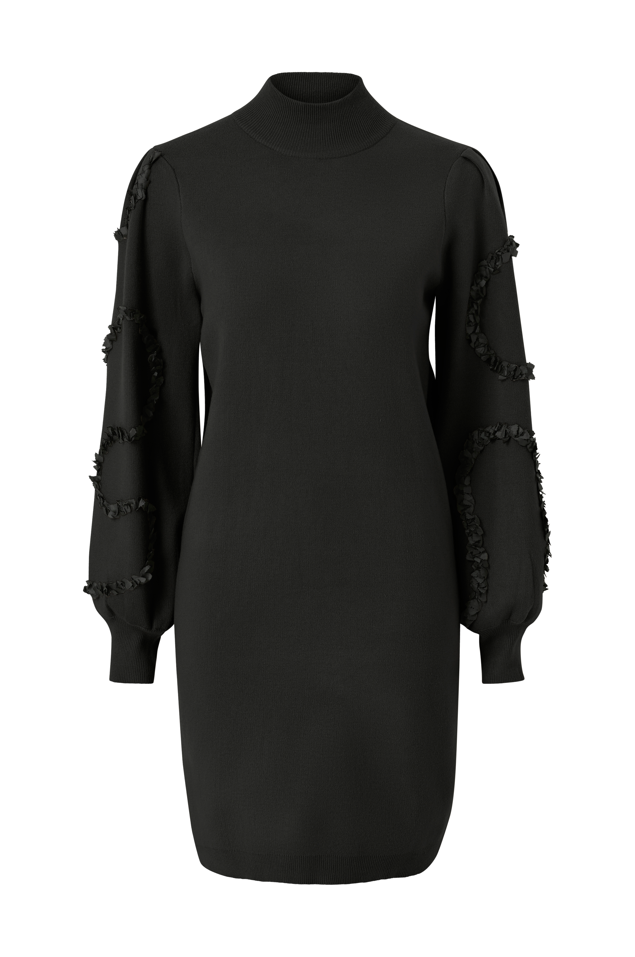 • Rak modell med applikationer på ärmarna• Hög, ribbstickad krage• Vid, lång ärm med ribbmudd• Längd: 91 cm i storlek S
