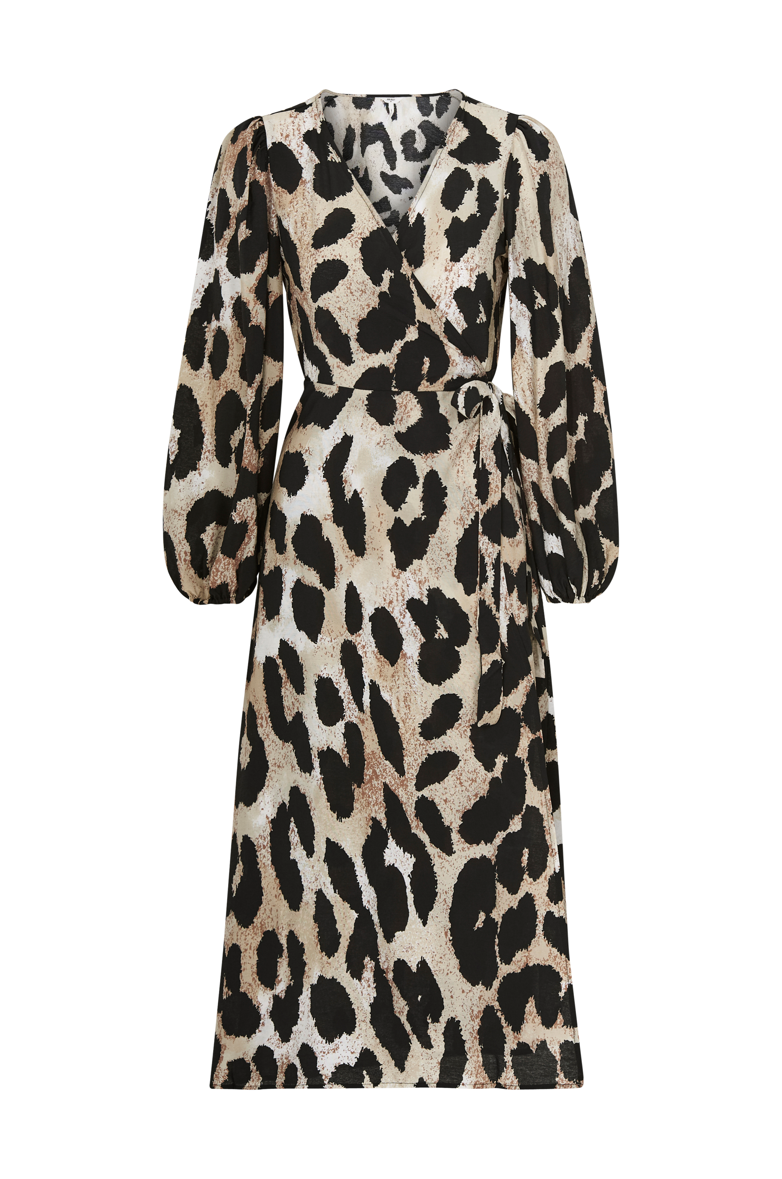• Omlottklänning med knytband i midjan • Långa ballongärmar med resår i ärmsluten • Tyg med lätt struktur • Tryckt mönster • Längd: 123 cm i storlek 36