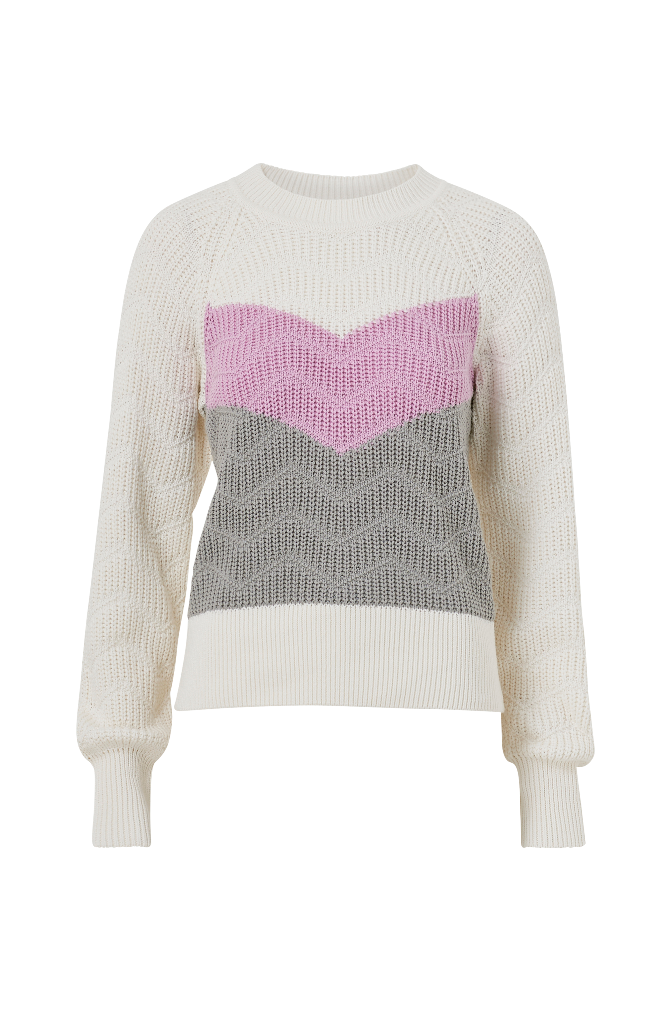 Tröja objRosa L/S Knit Pullover 110 från Object, strukturstickad med blockfärger fram. Bred ribb i nederkant och ärmslut.