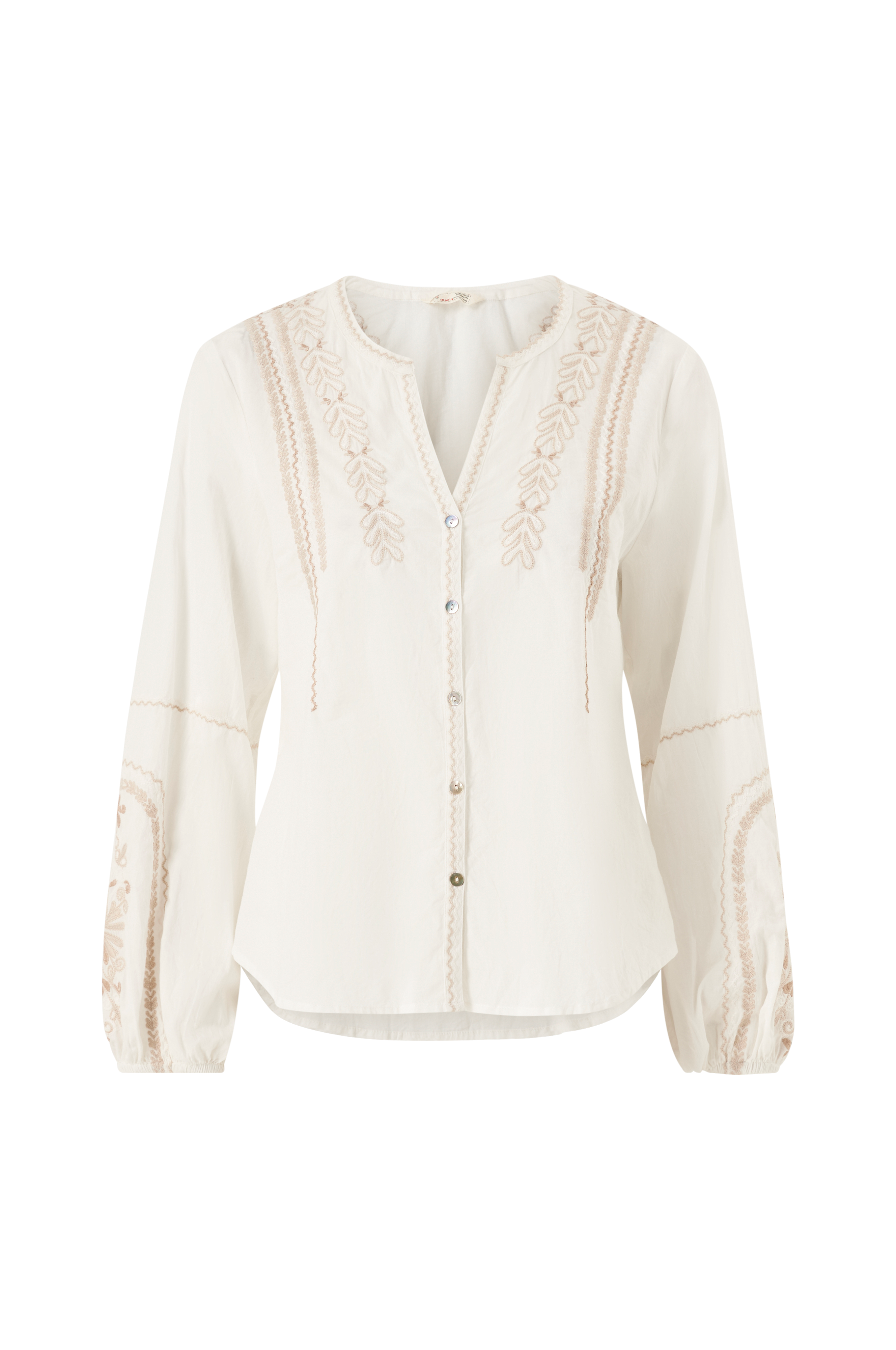 • Något figursydd modell med broderier • Rund hals med v-ringning och knappar hela vägen fram • Lång, vid ärm med elastiskt ärmslut • Rundad nederkant • Produkten innehåller ekologisk bomull som är odlad utan kemiska bekämpningsmedel, konstgödsel och genmodifierade grödor (GMO). Det innebär en mer hälsosam arbetsmiljö för bönder och bättre jordmån.