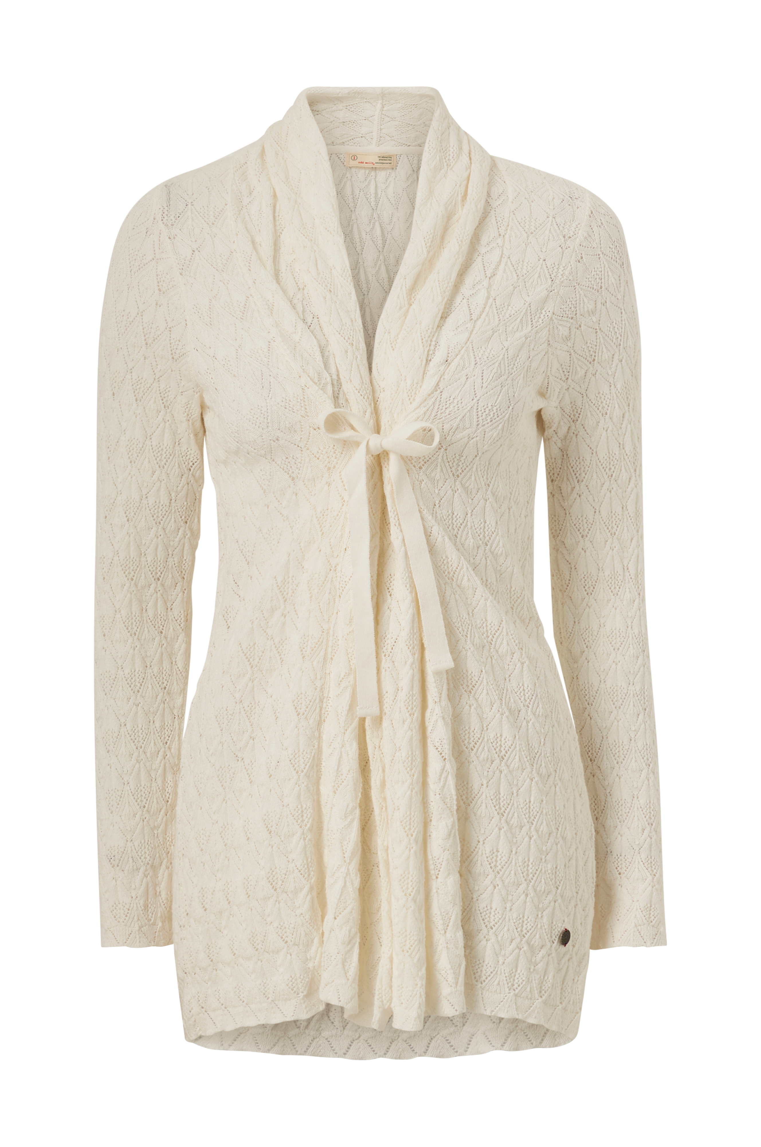 • Strukturstickad cardigan • Sjalkrage • Knytband fram • Produkten innehåller ekologisk bomull som är odlad utan kemiska bekämpningsmedel, konstgödsel och genmodifierade grödor (GMO). Det innebär en mer hälsosam arbetsmiljö för bönder och bättre jordmån.