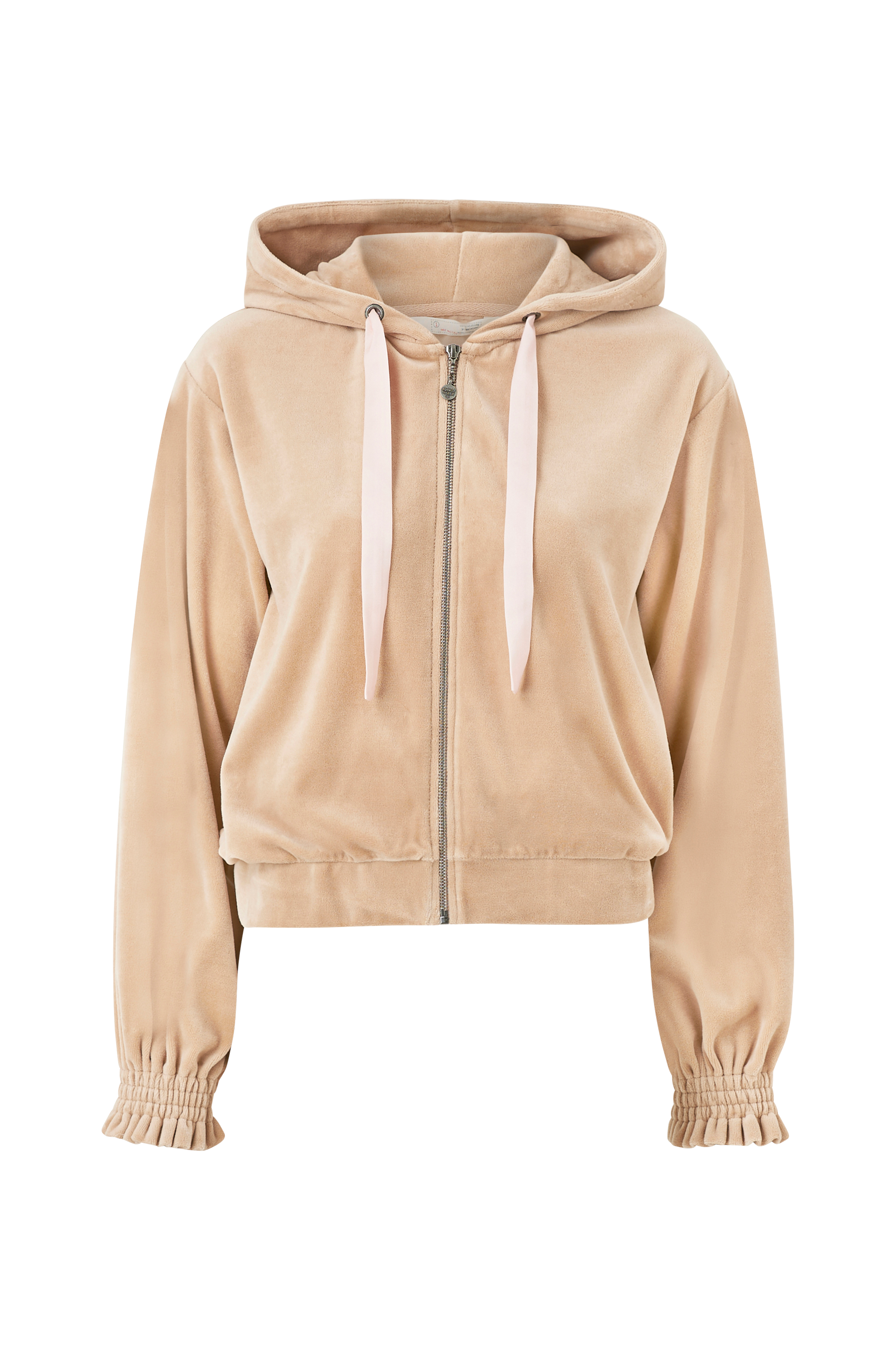 Huvtröja Marion Hood Sweater från Odd Molly i mjuk, skimrande velour. Dragkedja fram och något vidare, pösiga ärmar med bred resår och liten volangkant i ärmsluten. Huva med satindragsko.