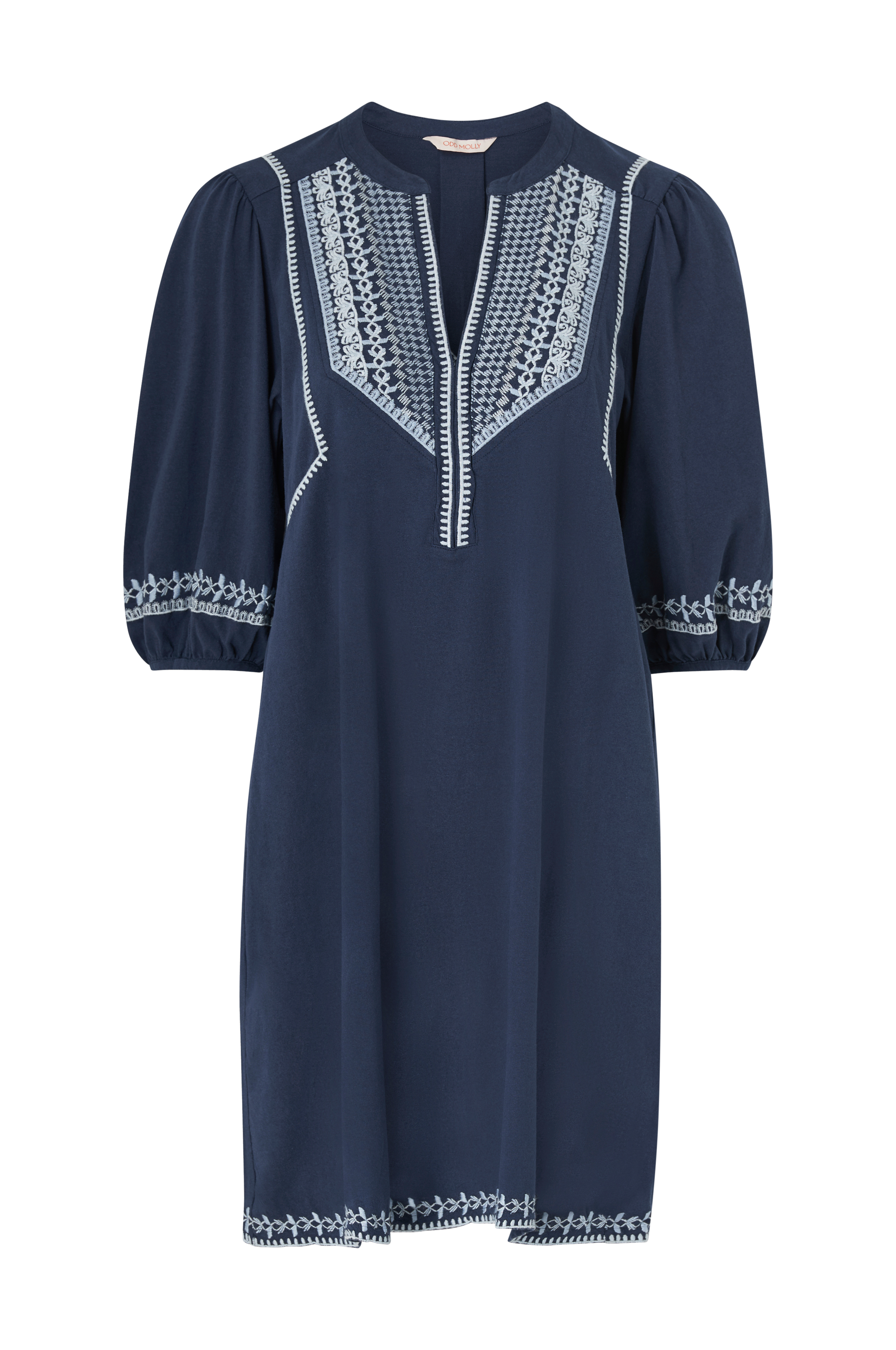 • Lätt utsvängd modell med broderier• Rund hals med sprund och hakar på bröstet• Vid, 3/4-lång ärm med resår i ärmsluten• Veck i ryggen• Längd: 88 cm i storlek S