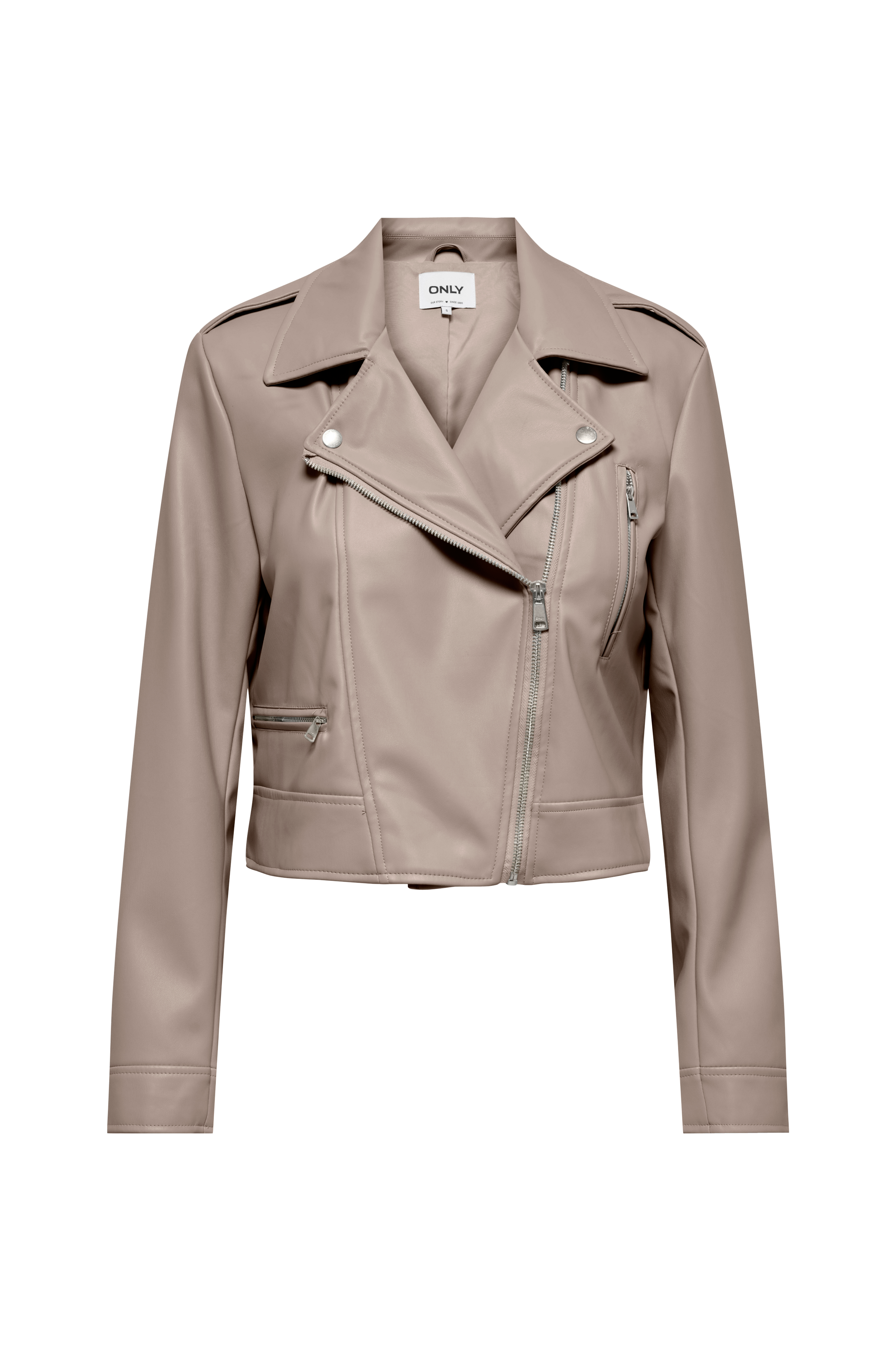 • Bikerjacka i skinnimitation• Krage med tryckknappar• Dragkedjestängning• En dragkedjeficka på bröstet• En dragkedjeficka i sidan• Plusstorlekar• Längd: 57 cm i storlek 42