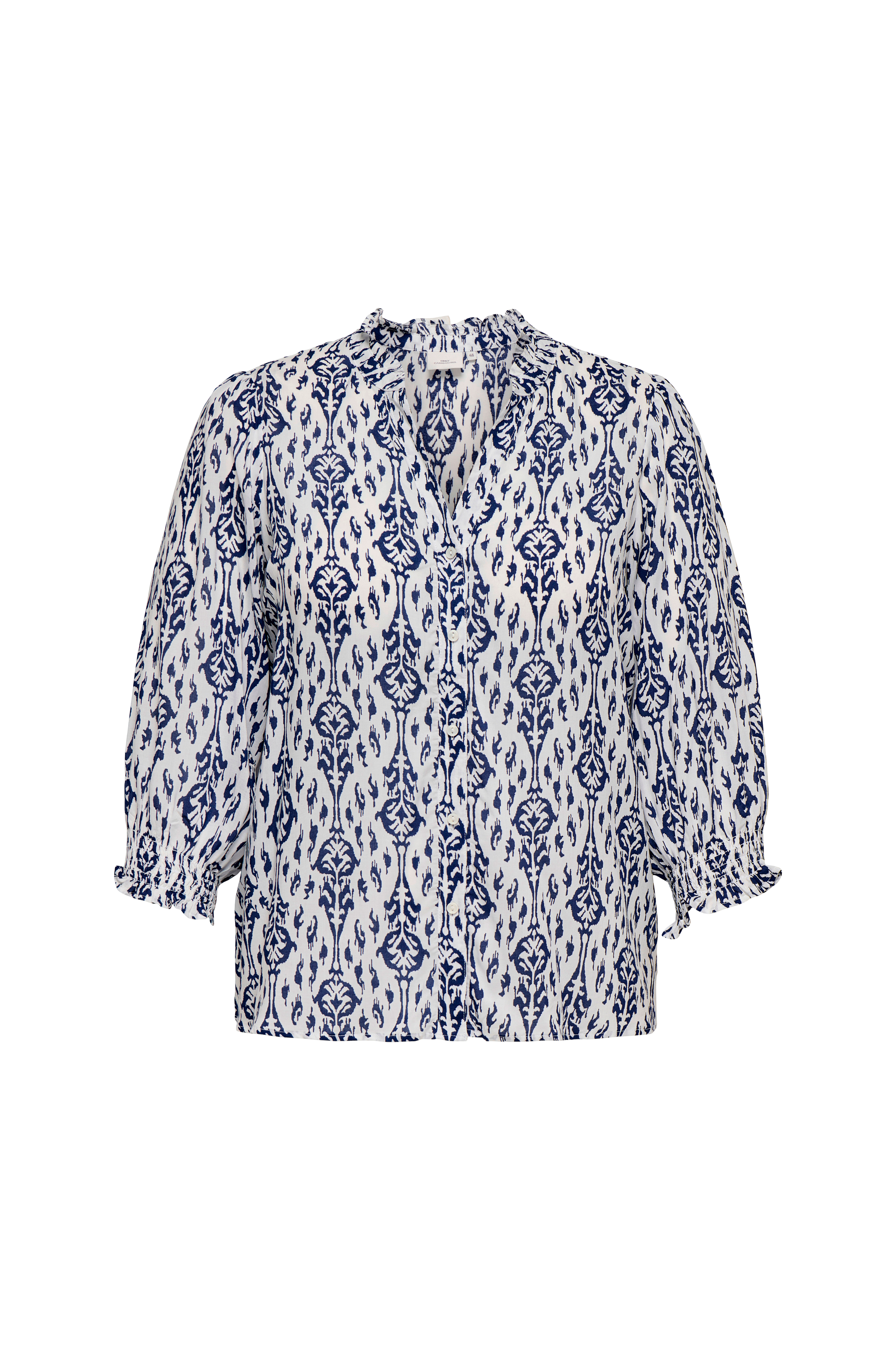 • Blus med v-ringad hals och volangkrage