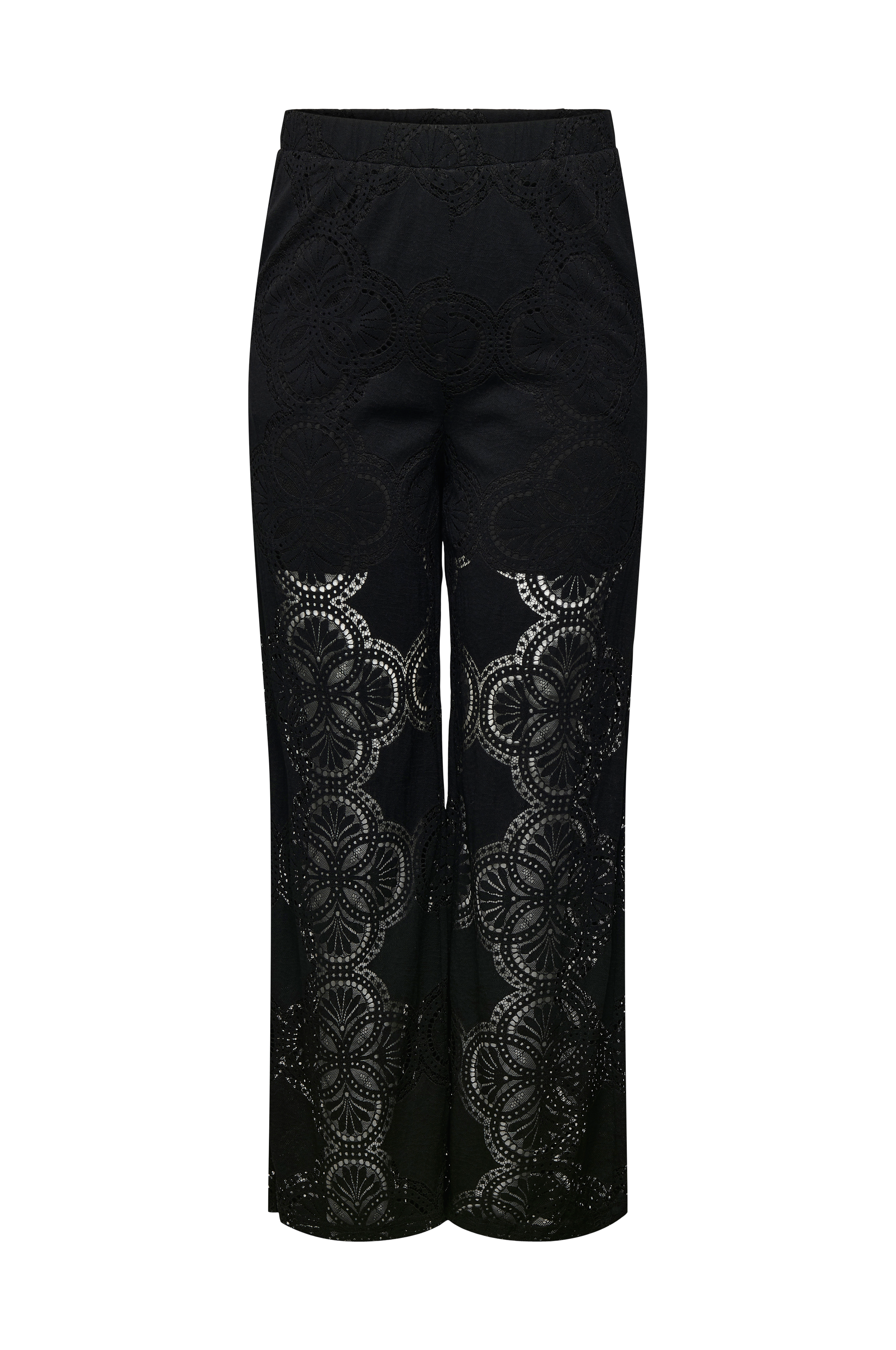 • Byxa med vida ben• Spetsliknande, halvtransparent tyg• Resår i midjan• Plusstorlek• Beninnerlängd: 78 cm i storlek 42• Byxorna har cykelbyxe-liknande foder upptill