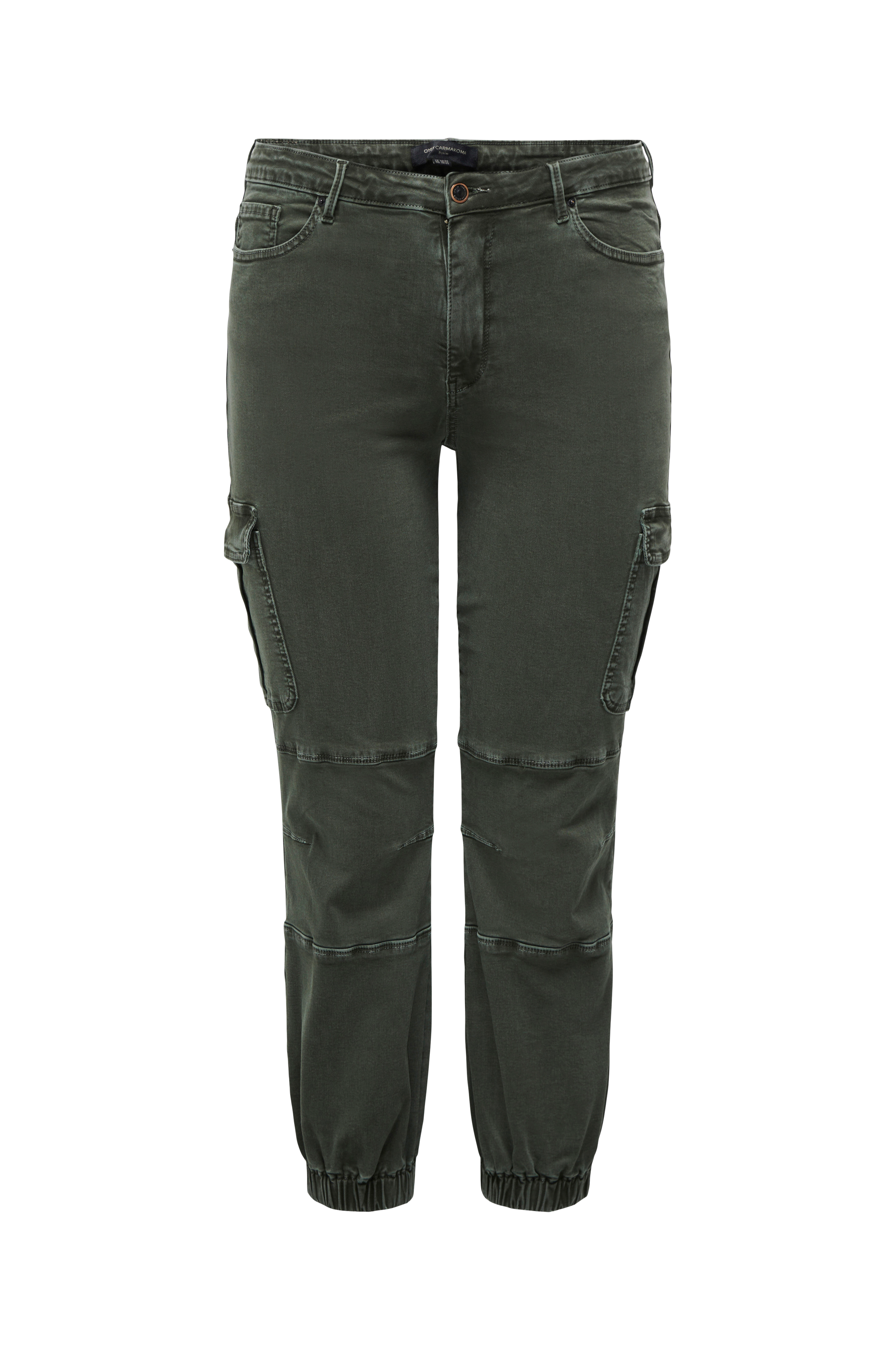 • Tre fickor fram• Två bakfickor• Två benfickor med tryckknapp• Dragkedjegylf• Resår i bensluten• Stretch• Plusstorlekar