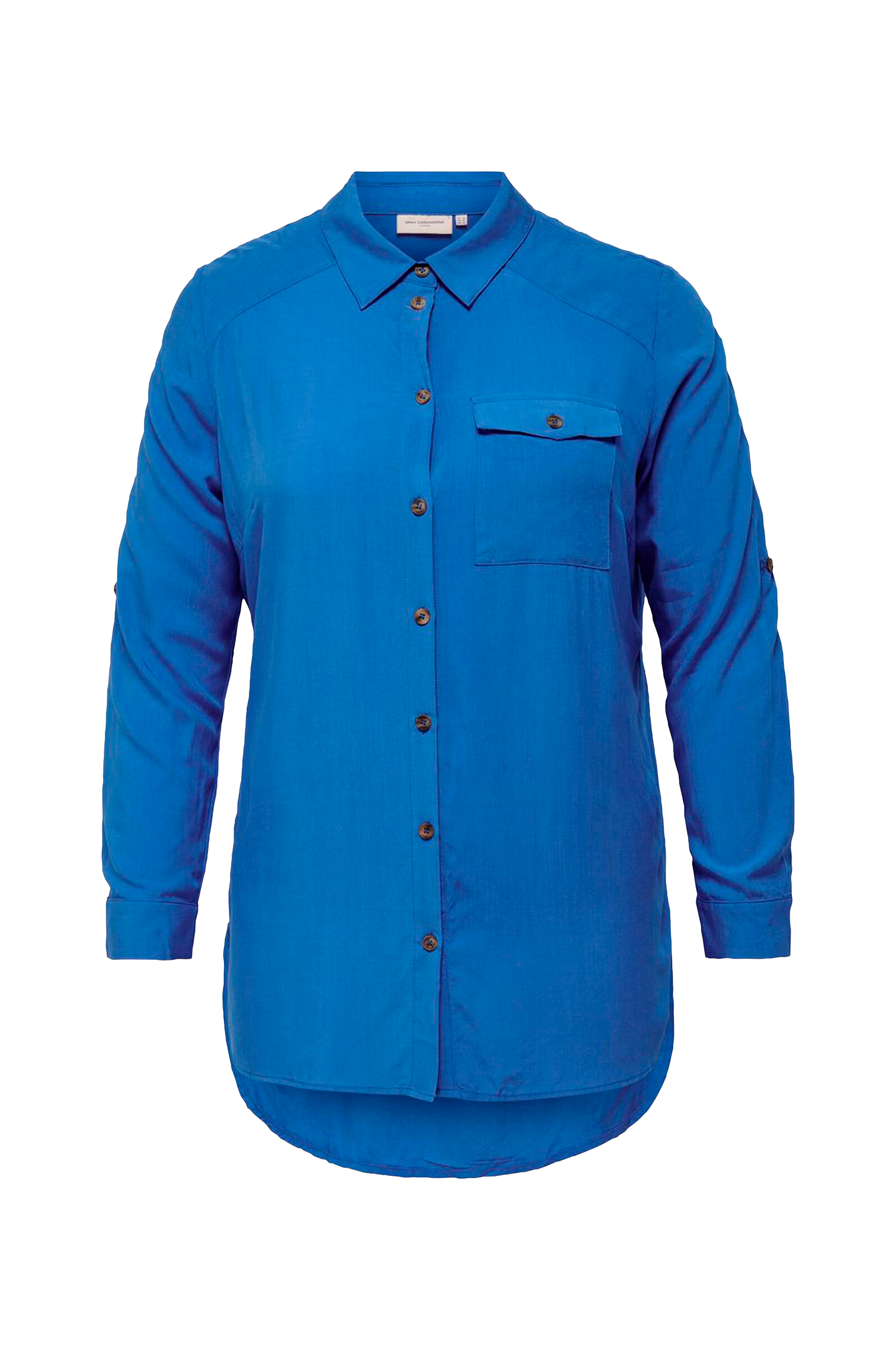 • Knappar fram• En bröstficka• Lång ärm med upprullningsdetalj• Längre baktill