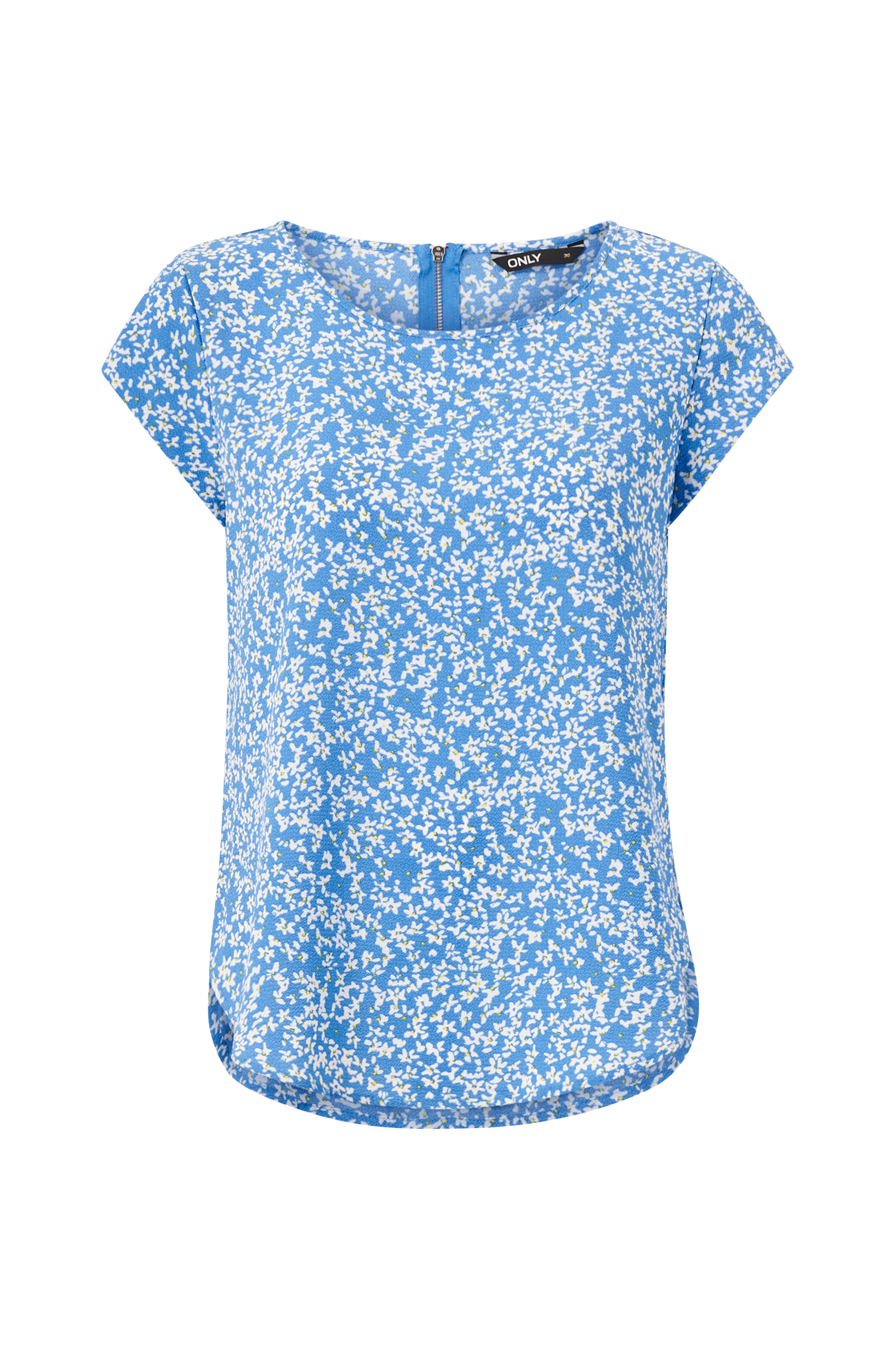 Blus onlVic SS Aop Top från Only i kortärmad modell med metalldragkedja i nacken och rundad nederkant. Gjord i vävd, kräppad kvalitet.