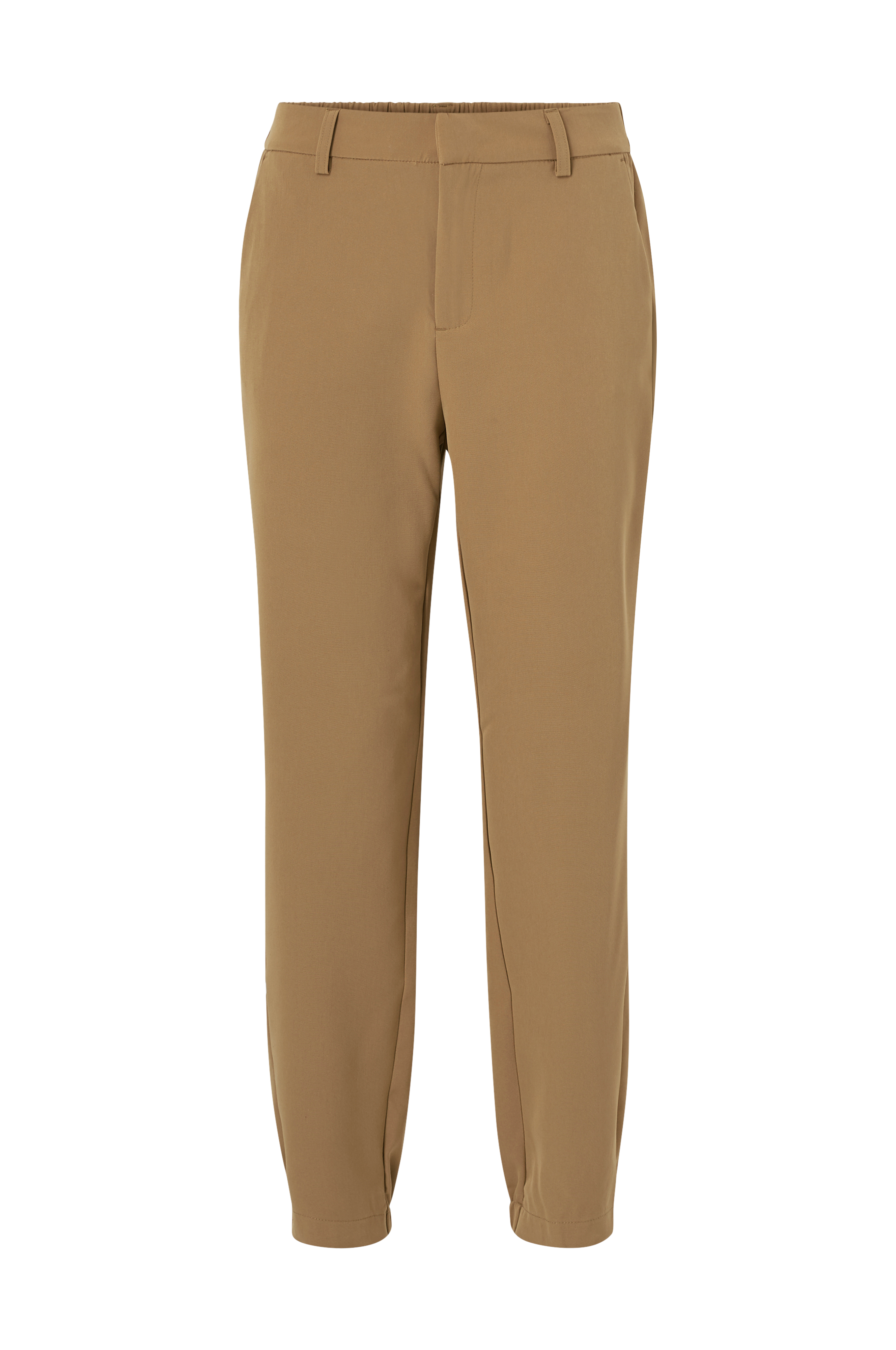 Dressade byxor med fina detaljer som resår i bensluten bak och rynkad resår i midjan bak. Ledig passform med lätt avsmalnande ben, fickor i sidorna, fuskfickor bak och gylf med dragkedja samt hyska och hake. Gjorda i vävd kvalitet med lätt stetch. Beninnerlängd ca 68 cm i stl 36.