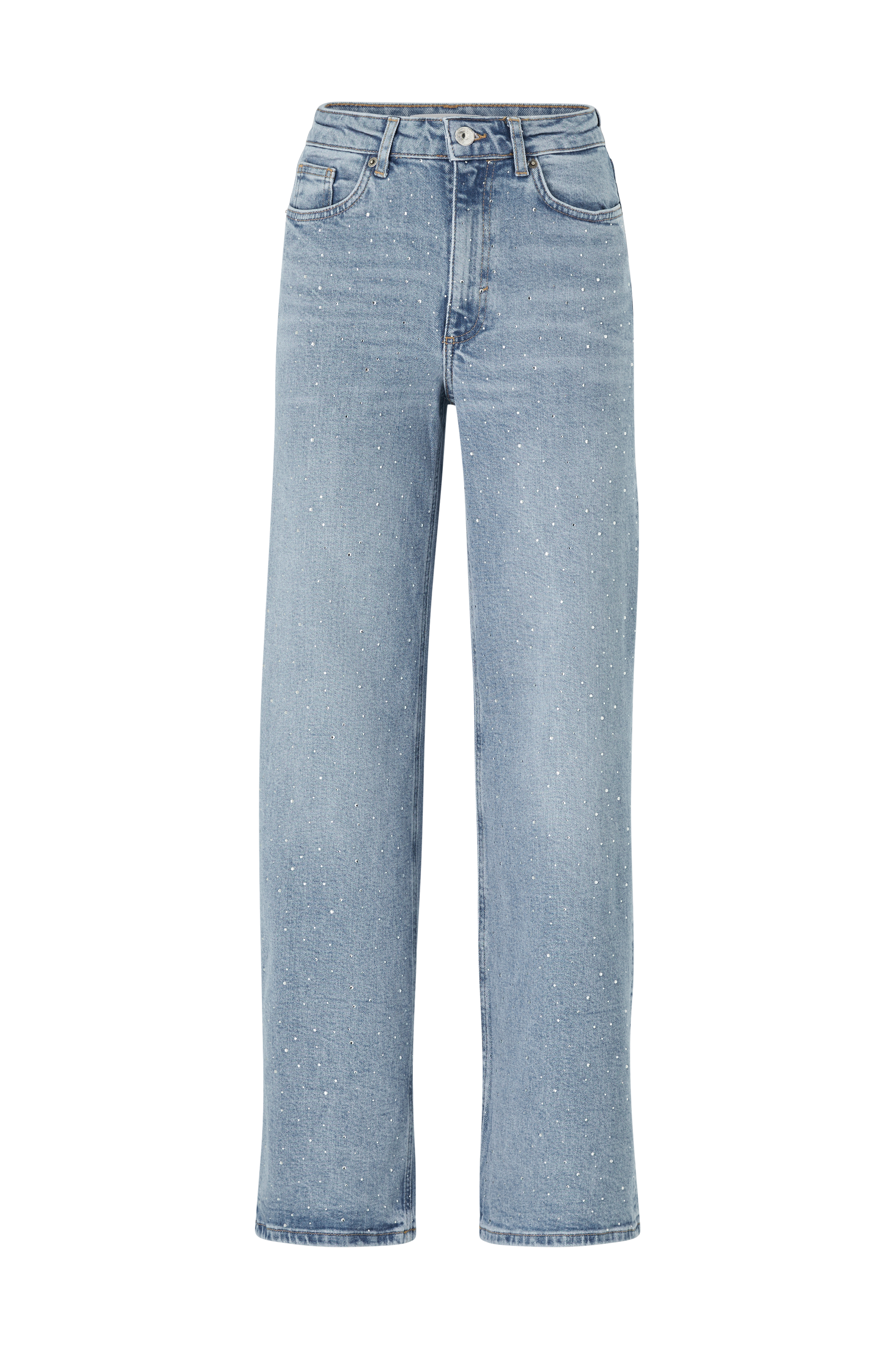 • Femficksmodell med dragkedjegylf• Vida ben med strass framtill