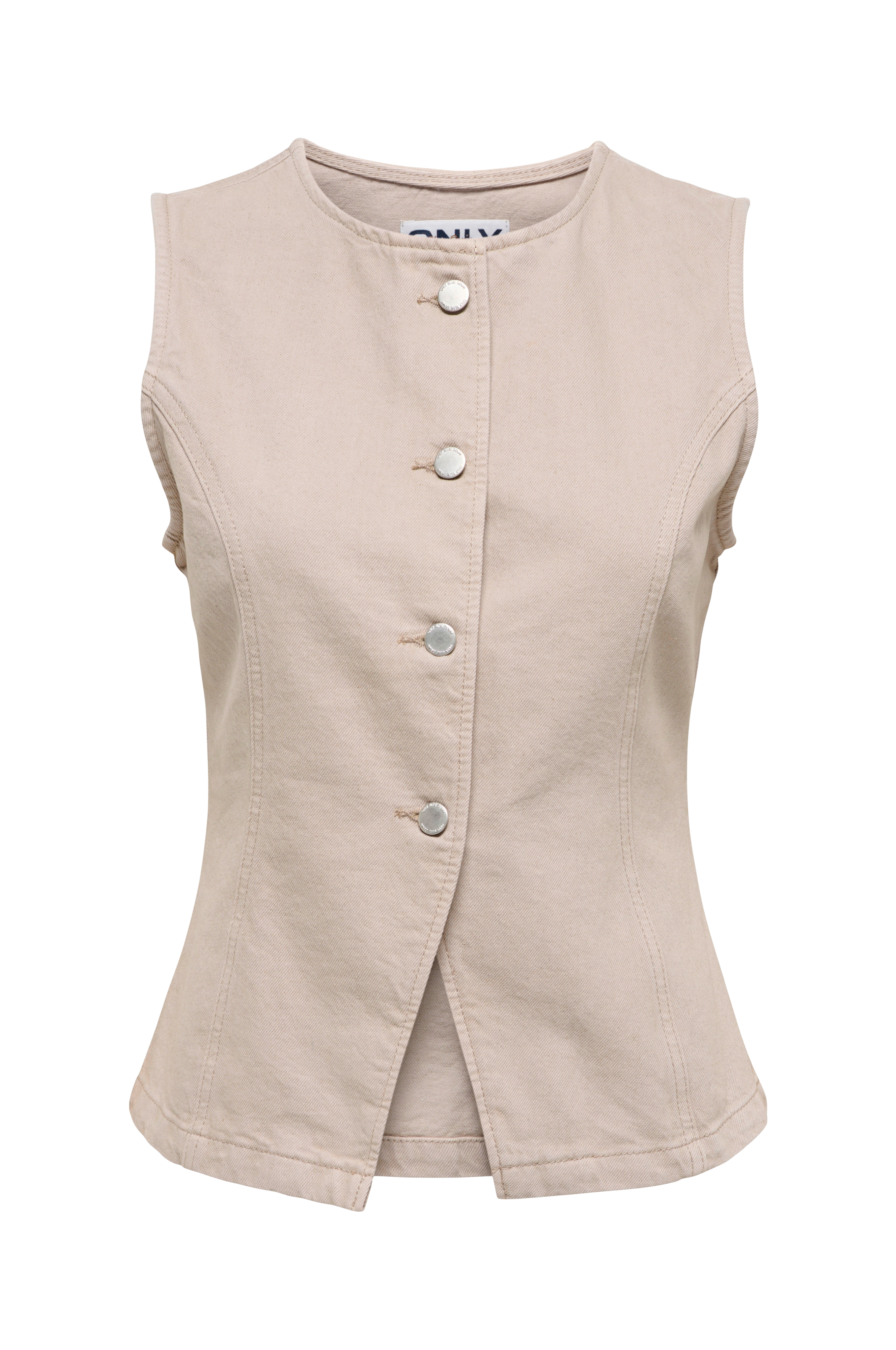 • Figurformad jeansväst• Rund halsringning• Knappstängning