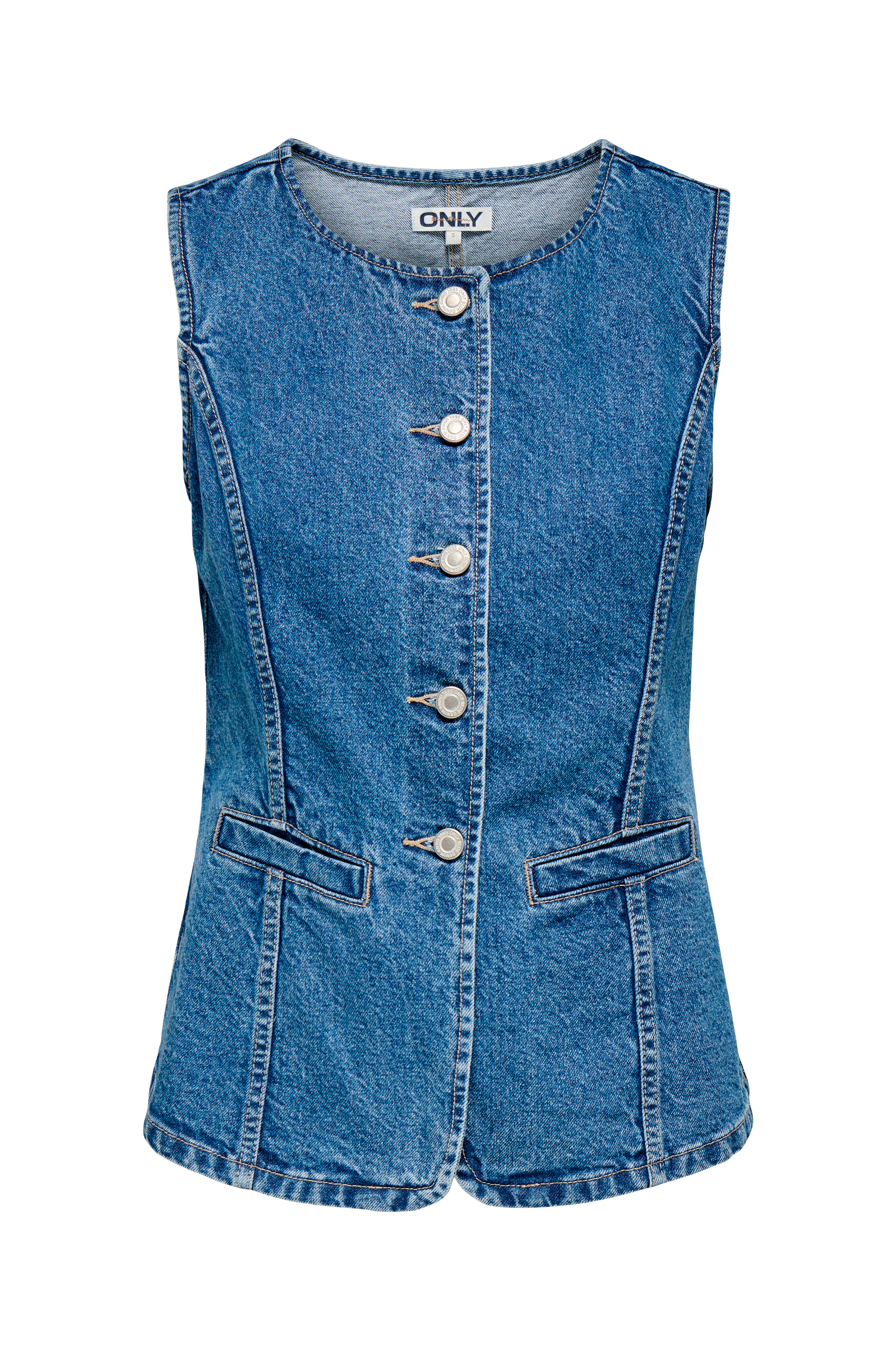 • Figurformad väst i denim• Rund halsringning• Knappstängning• Passpoalfickor fram• Något längre framsida
