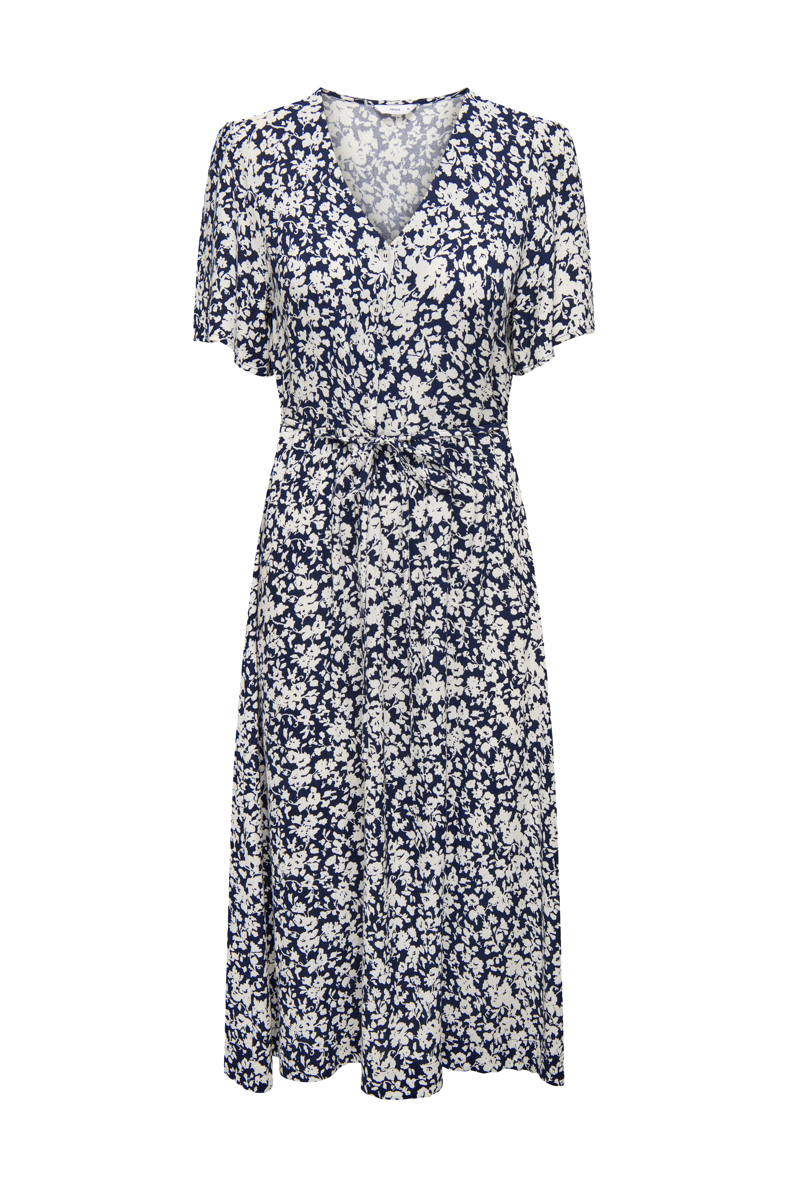 • Midiklänning i viskos• V-ringad hals med knappstängning• Korta puffärmar• Markerad midja med rynk fram och invändig resår bak• Knytband i midjan• Längd: 120 cm i storlek S