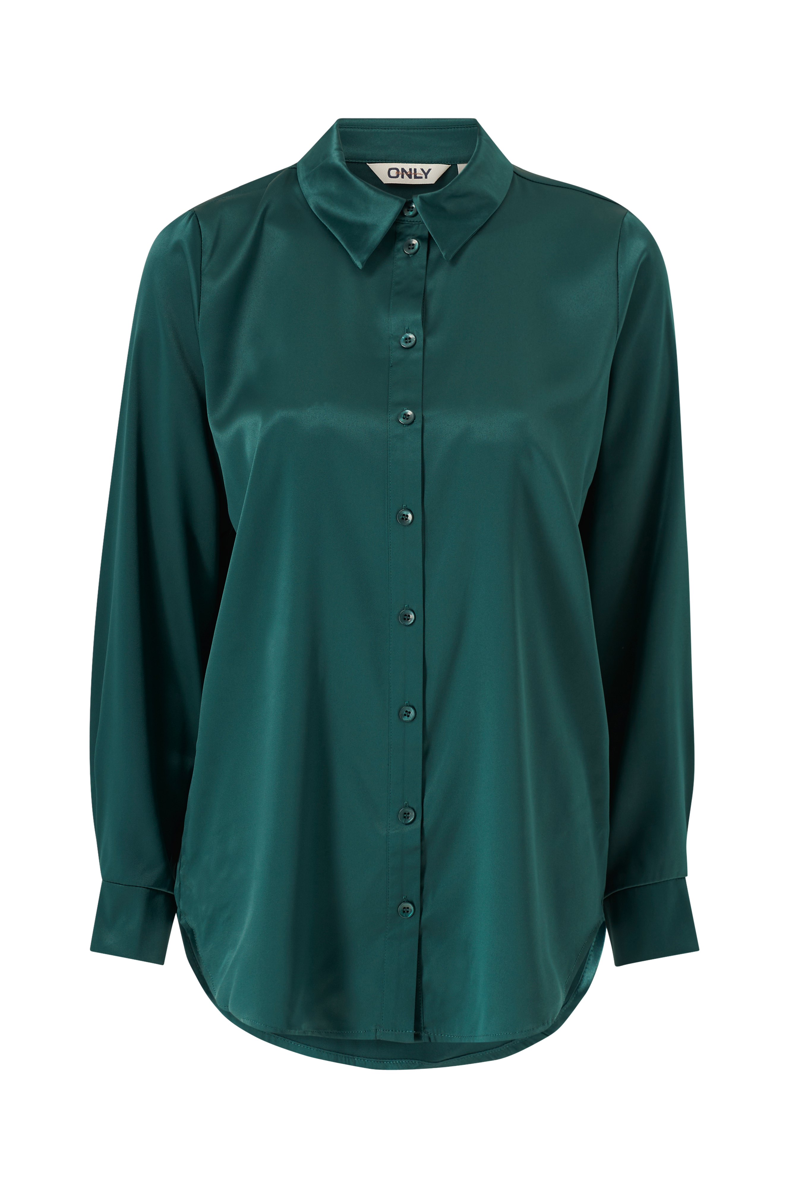• Rak, ledig modell i satin• Knäppning fram• Lång ärm med manschett• Rundad nederkant