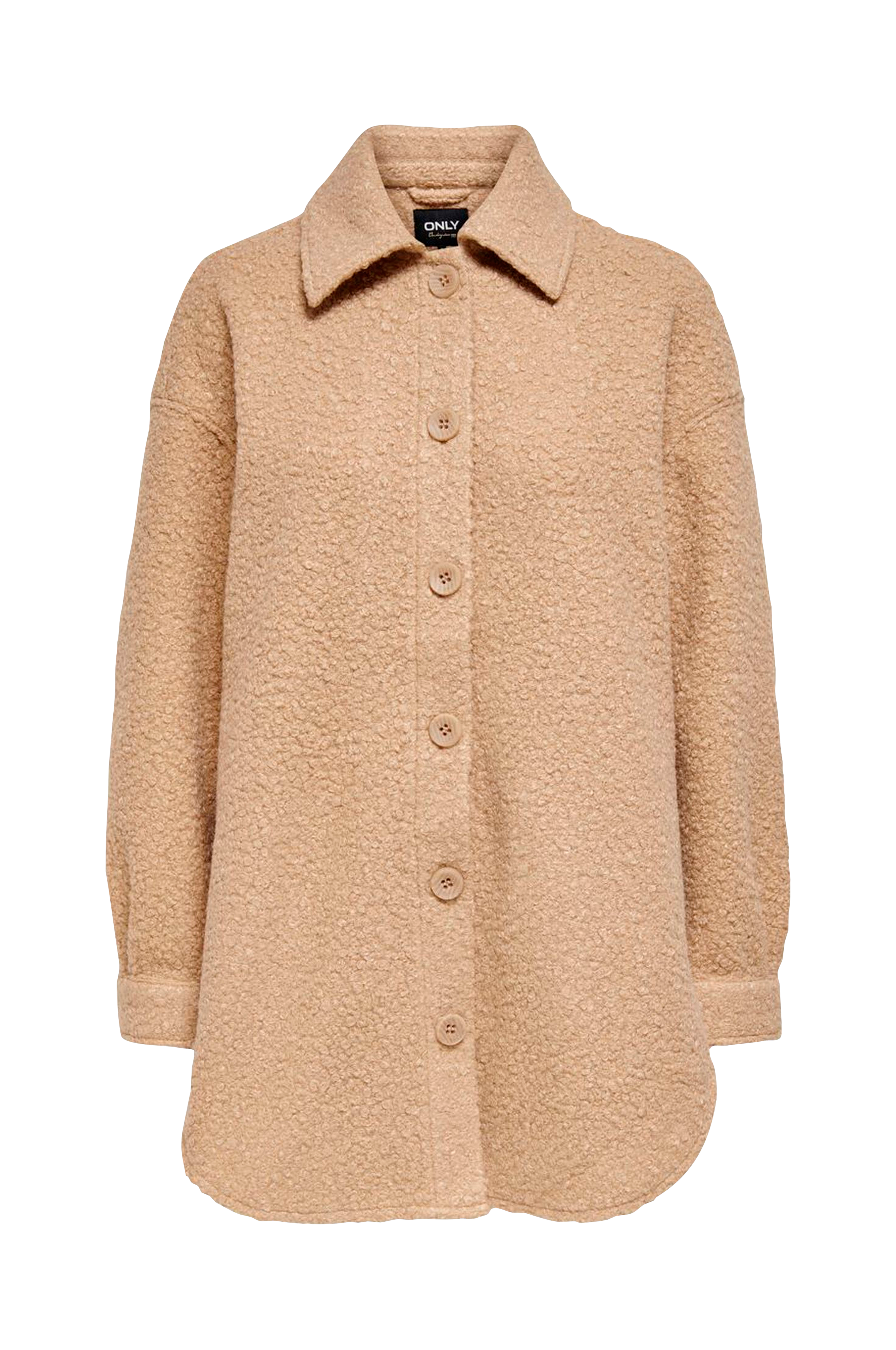 Skjortjacka i vid, rak modell med stora knappar fram.