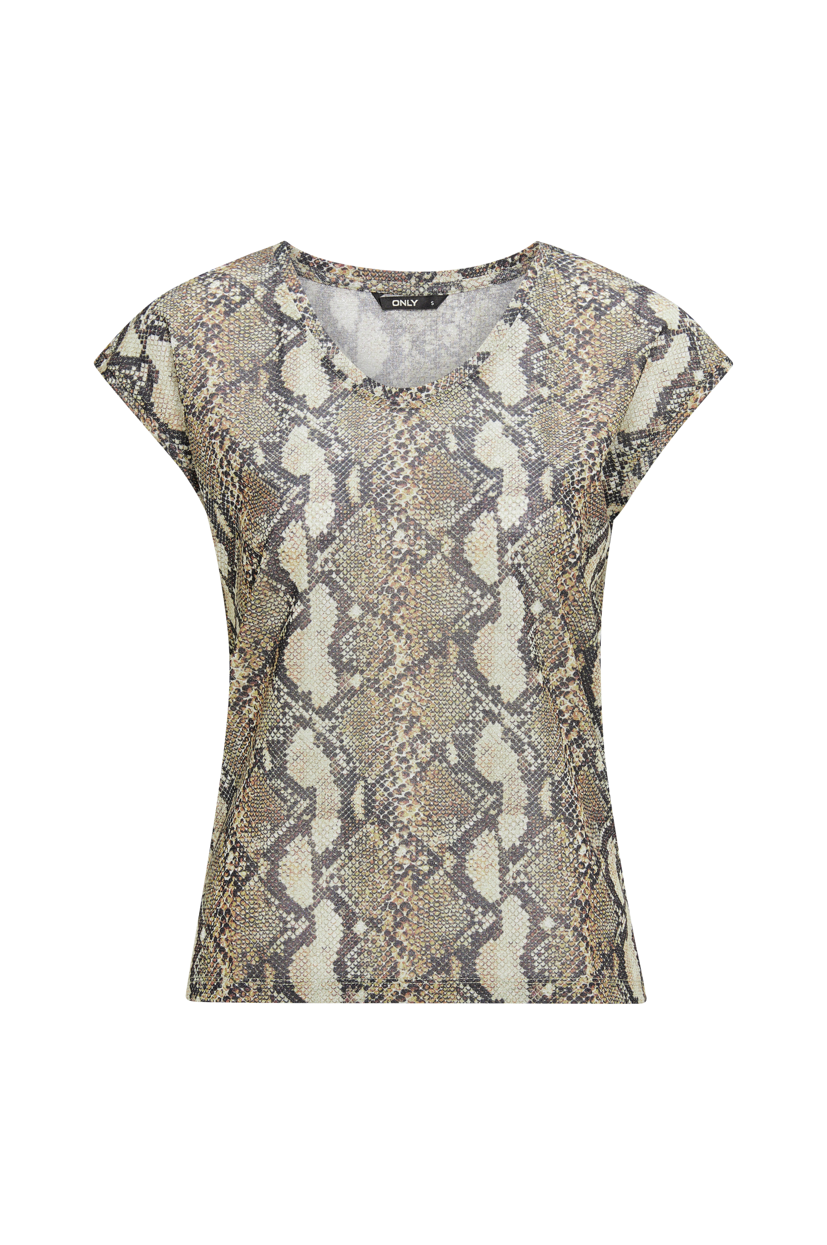 Topp onlSilvery SS Lurex Top från Only. Lätt figurformad modell i trikåkvalitet med instickad glittertråd. V-ringad hals med liten kant och nerhasad axel med kort ärm som också har liten kant i ärmslut.