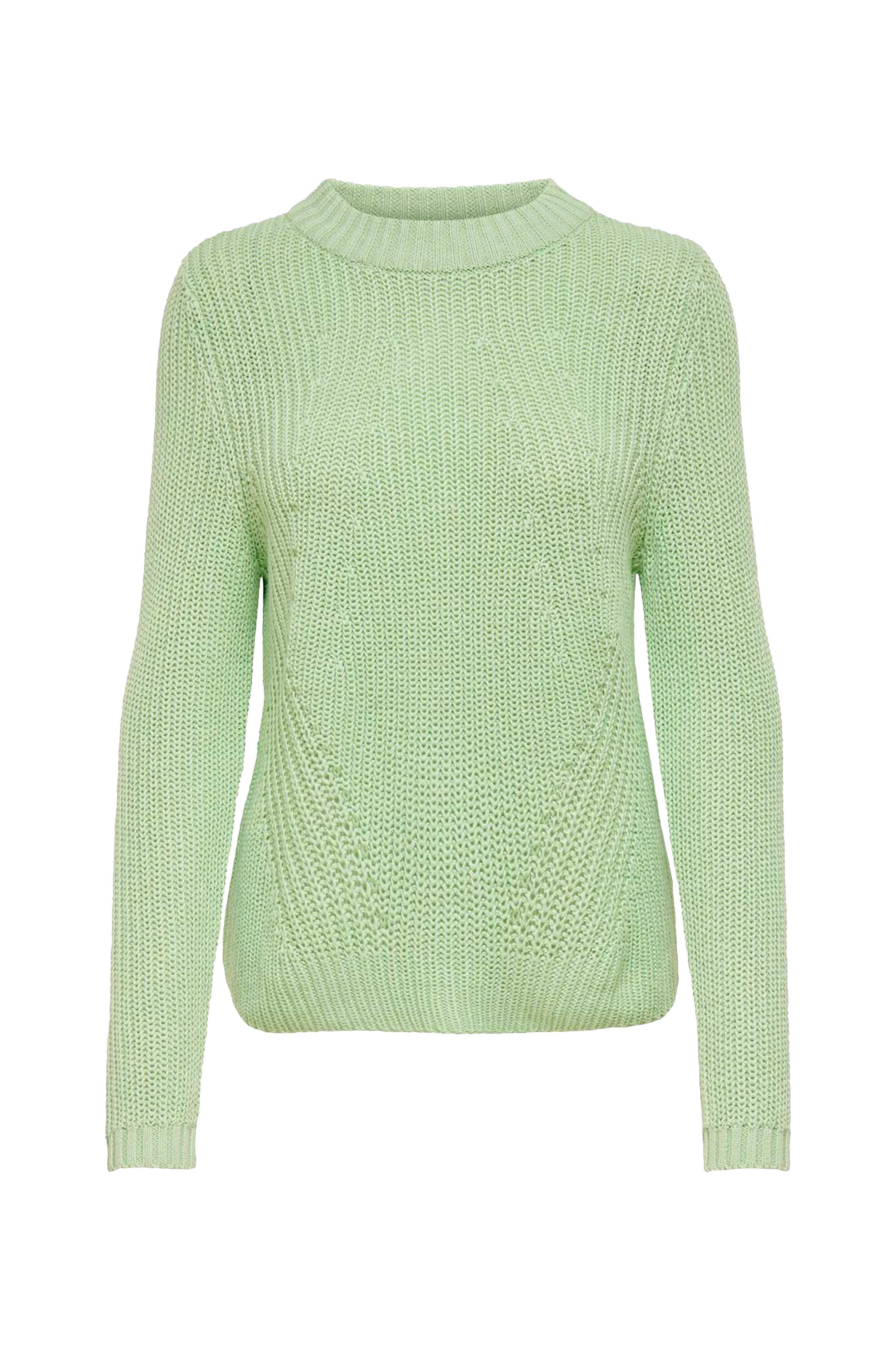 Stickad tröja i bomullsmix med strukturmönster fram. Rak modell med bred ribb i halsen.