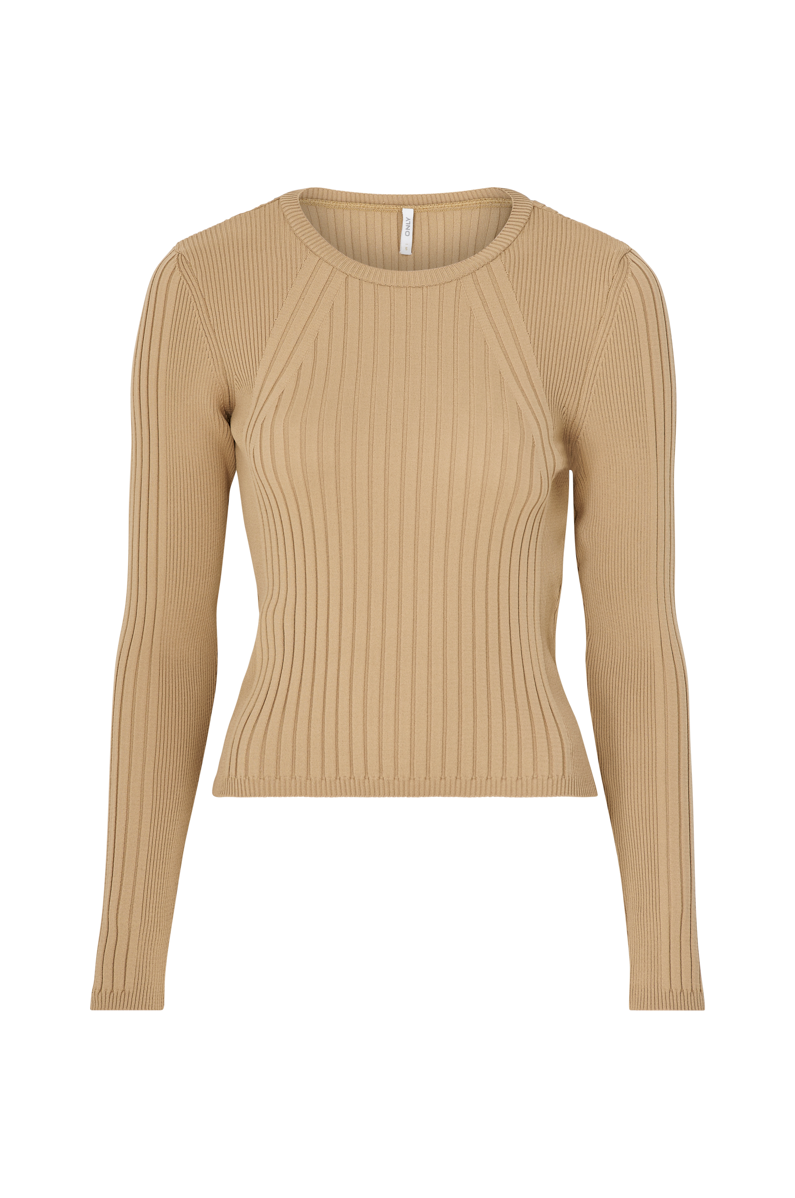 Mjuk, ribbstickad tröja med både breda och smala ribbade partier. Rund halsringning.