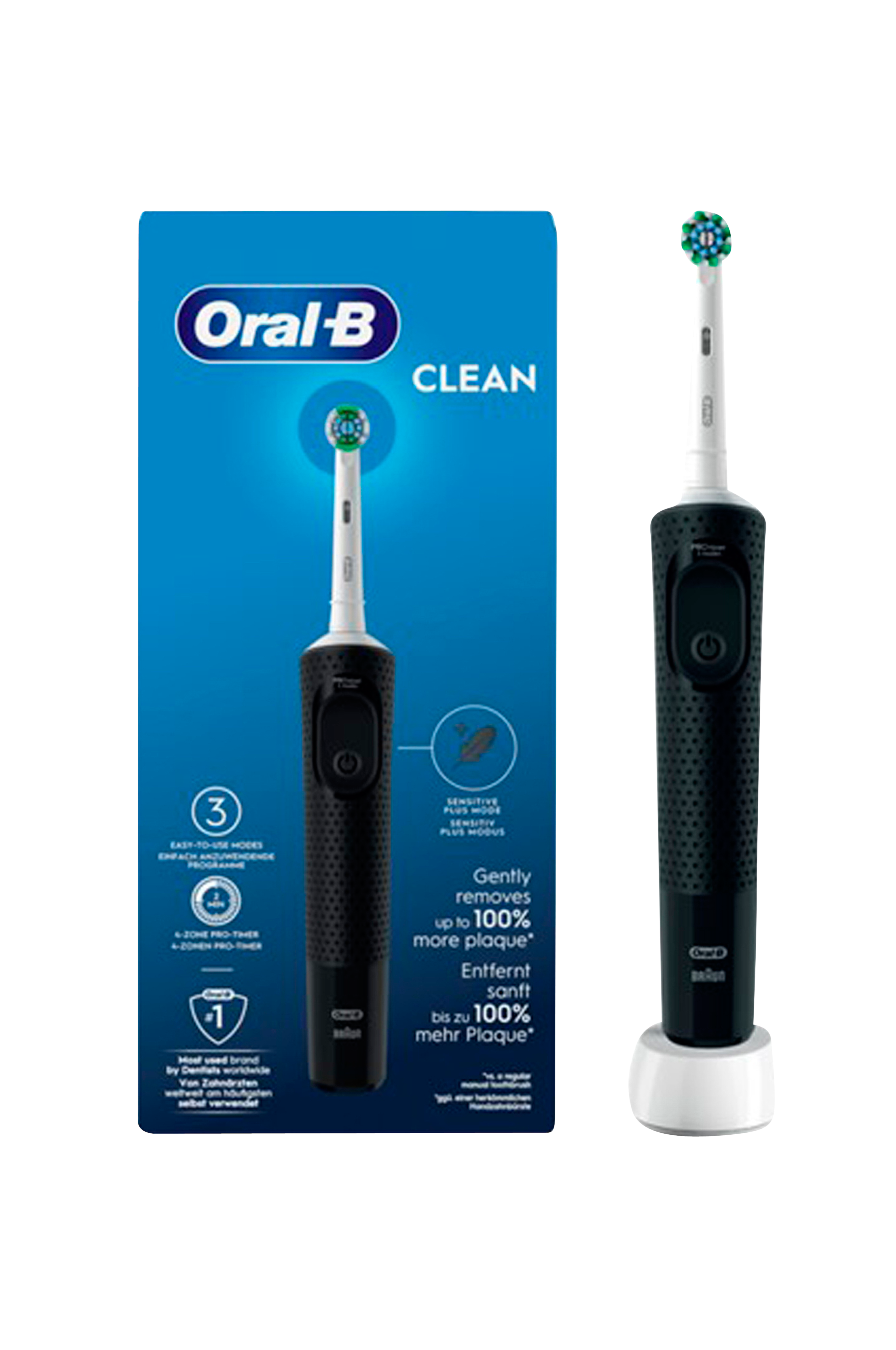 Den uppladdningsbara eltandborsten Oral-B Clean ger en överlägsen rengöring jämfört med en vanlig manuell tandborste. Den har tre borstningslägen och en inbyggd timer som hjälper dig att borsta i de två minuter som tandläkaren rekommenderar. Det intuitiva runda borsthuvudet omsluter varje tand, vilket förbättrar rengöringen och skyddar tandköttet. Med ett unikt känsligt läge ger den en mild borstningsupplevelse som är skräddarsydd för att möta individuella behov, inklusive djuprengöring och blekning. Oral-B:s innovativa design säkerställer grundlig rengöring i områden som manuella borstar kan missa. Njut av konsekvent prestanda med ett pålitligt batteri med lång livslängd, allt från det varumärke som föredras av tandläkare över hela världen.
