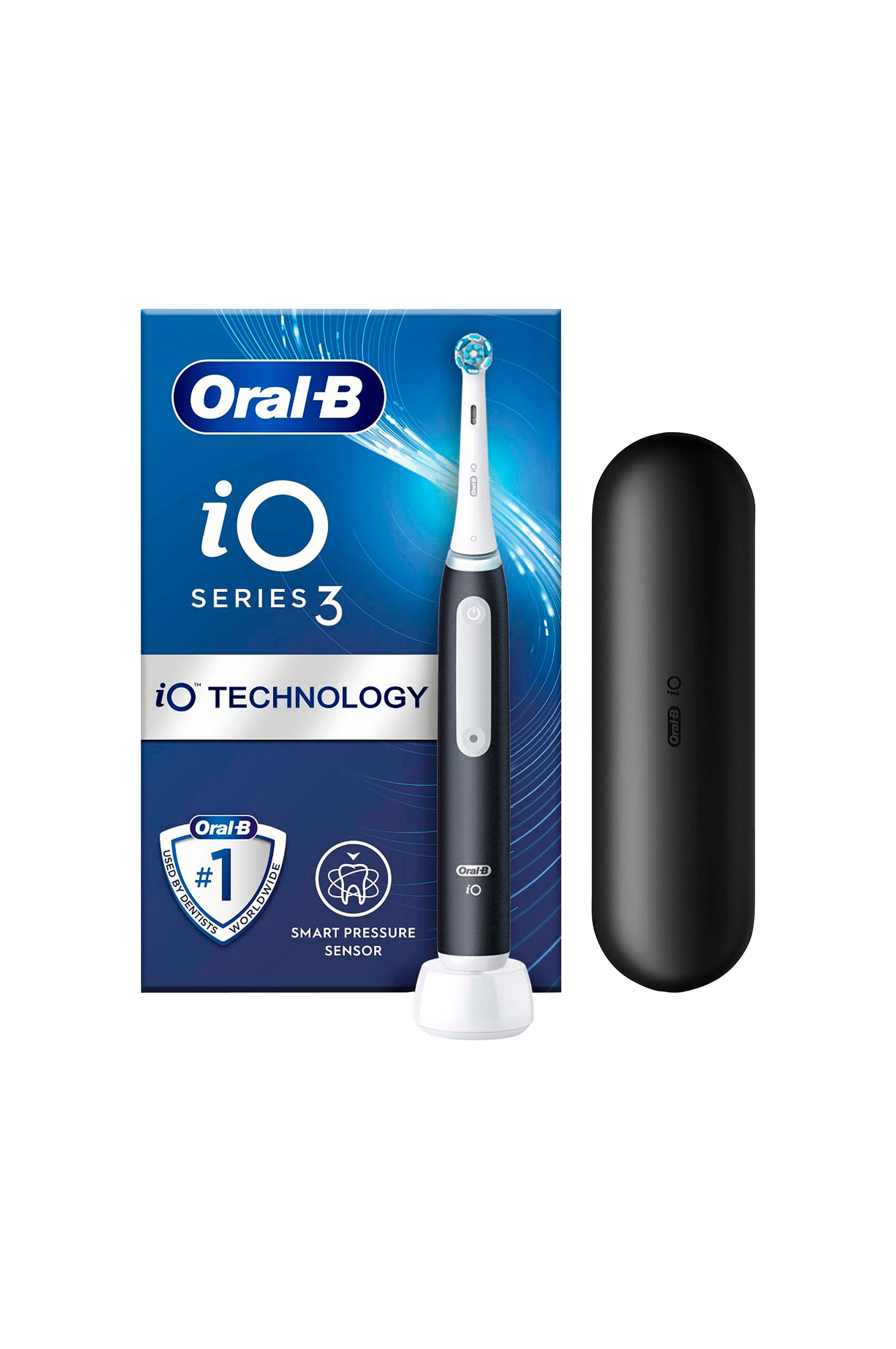 Eltandborste Oral-B iO3 med resefodral har Oral-B:s bästa teknik och kombinerar ett tandläkarinspirerat runt borsthuvud med mikrovibrerande borststrån för en professionell ren känsla hemma. Smarttrycksensorn förhindrar att du borstar för hårt eller för mjukt för att skydda ditt tandkött och få den bästa rengöringen. Smart Pressure Sensor meddelar dig om att du har lagt för mycket tid på att borsta med för hårt tryck. Ersätt dina Oral-B iO Series-refillborsthuvuden var tredje månad för bästa resultat.
