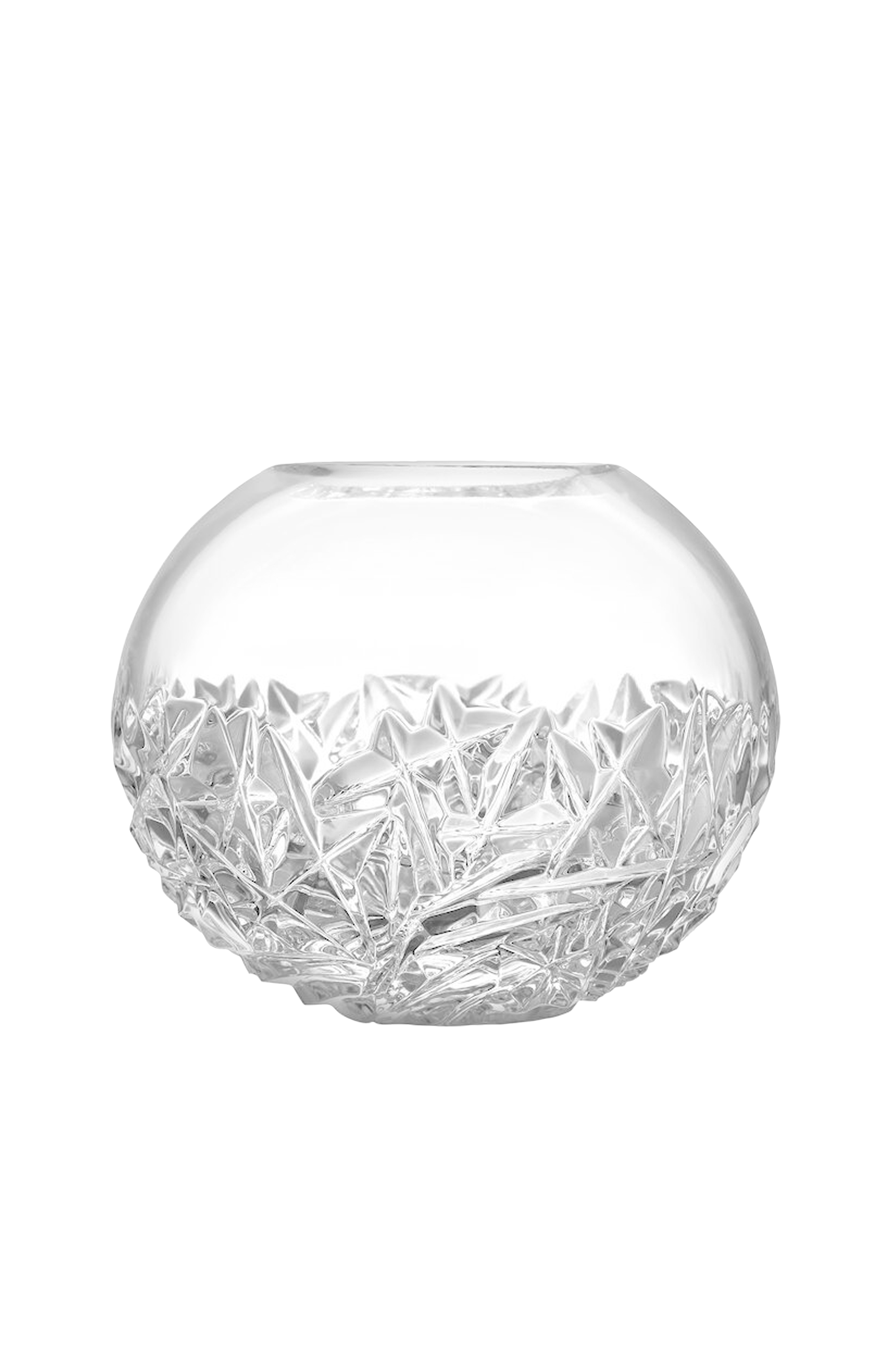 Carat klotvas har ett mönster upptill som kontrast till det släta glaset. Vasen passar till ett vidare fång blommor, då klotformen låter stjälkarna ta plats. Serien Carat bygger på en samtida tolkning av traditionell glasslipning som har gjort Orrefors världsberömt. Den oregelbundna geometrin skapar vackra reflektioner av ljus i kristallglaset. Formgivning: Lena Bergström.