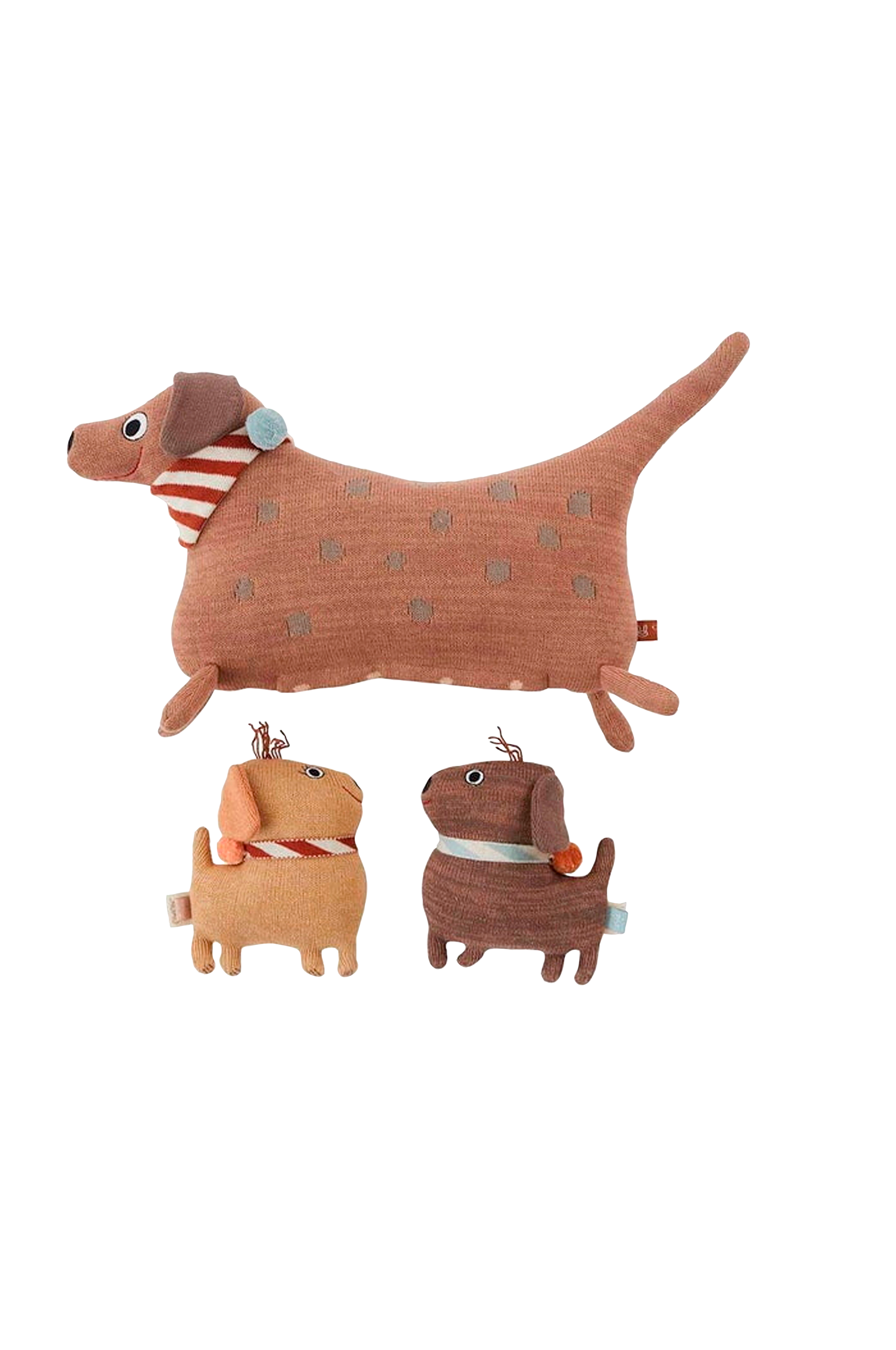 Hunsi dog är en söt hund som levereras med två valpar, coco och max. Det finns plats för valparna i hunsis mage, som kan öppnas och stängas med kardborreknäppning. En lekfull och söt leksak som de små i familjen kommer att älska. Hunden och valparna är tillverkade av 100% bomull i en finstickad kvalitet
