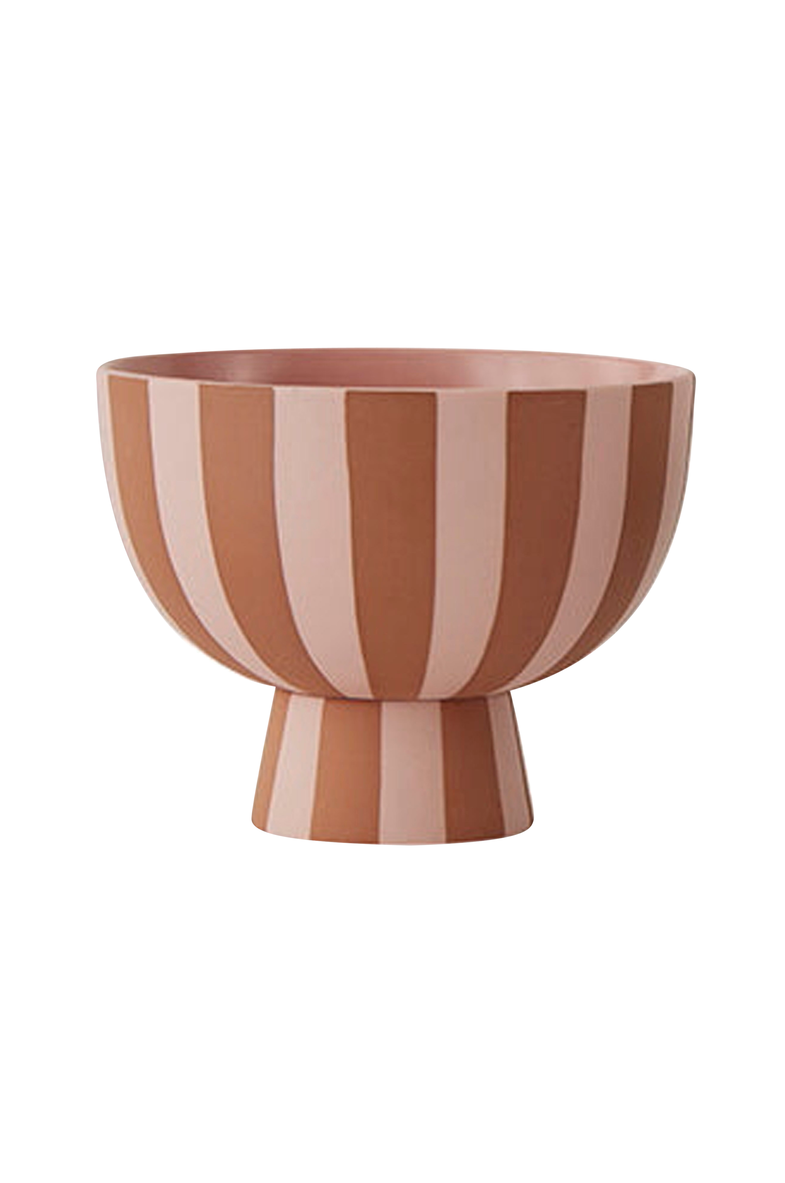 Toppu miniskål är en del av den populära Toppu-serien. Toppu-serien består av dekorativa mönster i keramik och är en av våra mest populära design. Toppu presenterades första gången i kollektionen ss17, och de karakteristiska ränderna har sedan dess vidareutvecklats till en hel serie unika produkter, inspirerade av tidens trender. Använd skålen som ett dekorativt element eller för förvaring. Serien är tillverkad av 100% keramik och är handgjord. För rengöring rekommenderas att diska med vatten och torka av med en torr trasa.