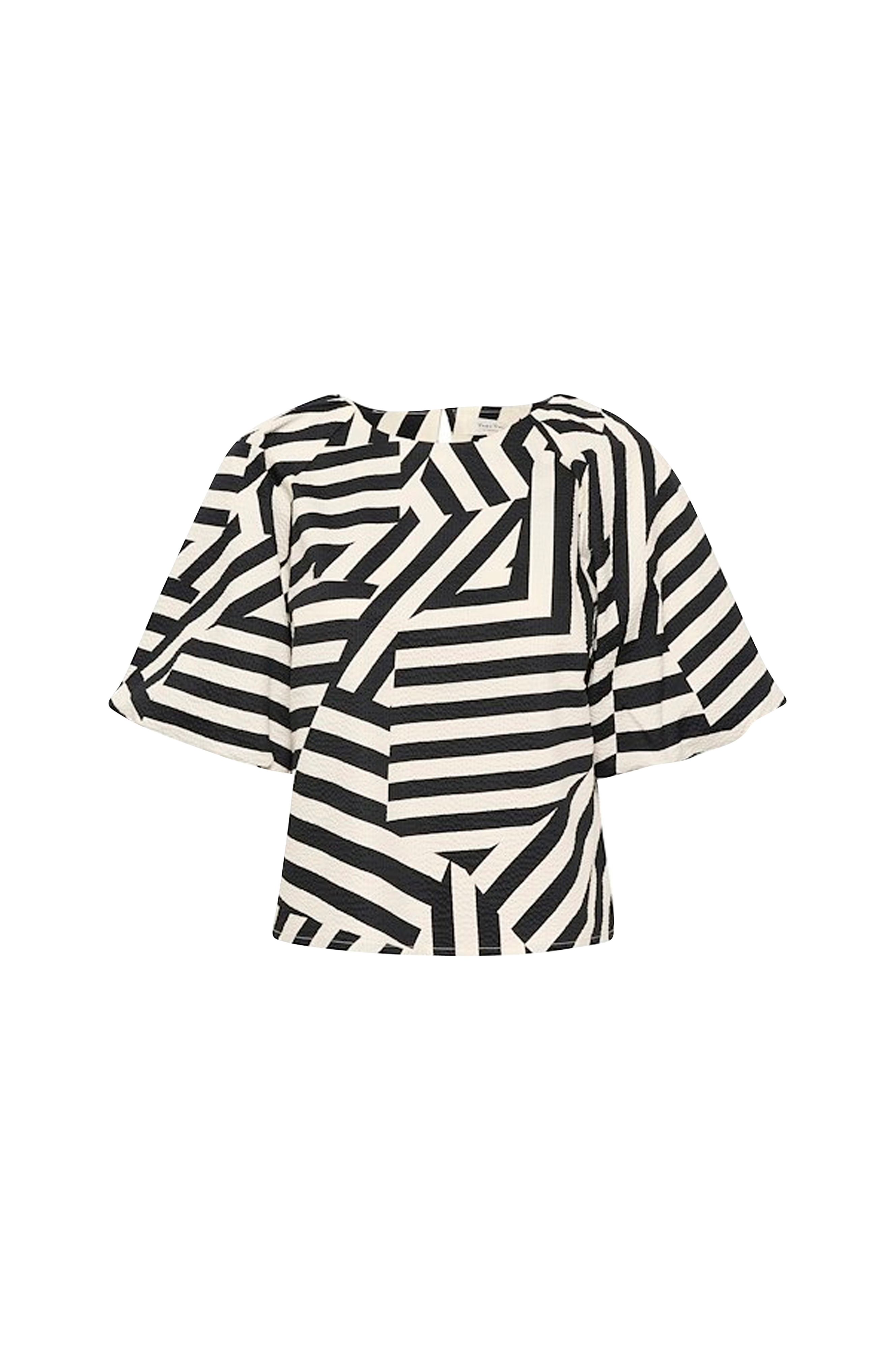 • Korta puffärmar• Sprund med knapp i nacken• Strukturerat material