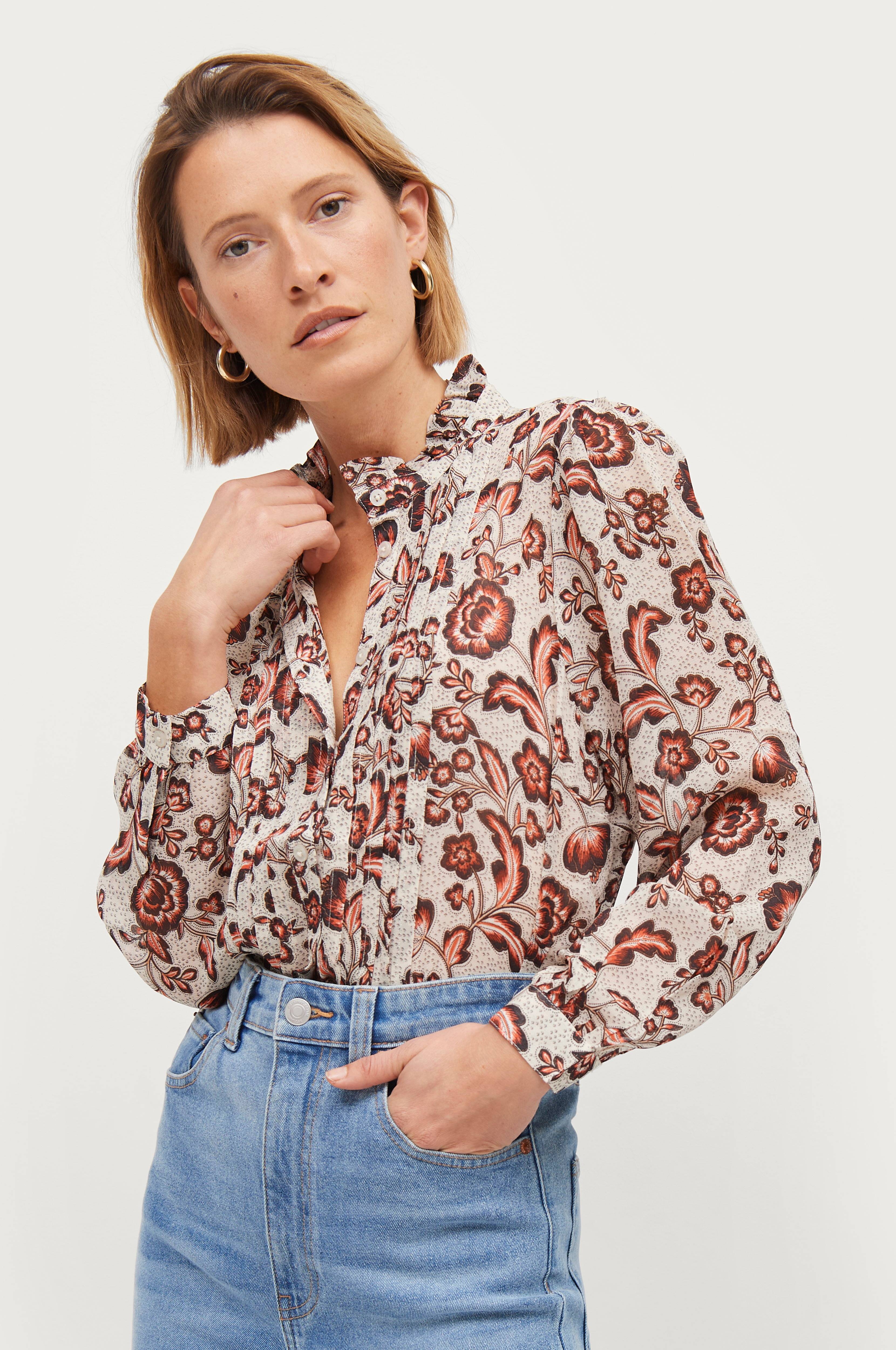 • Gjord av semitransparent viskos med tryckt mönster• Rund halsringning med en volangkant runt om• Stråveck fram• Knapp i ärmsluten