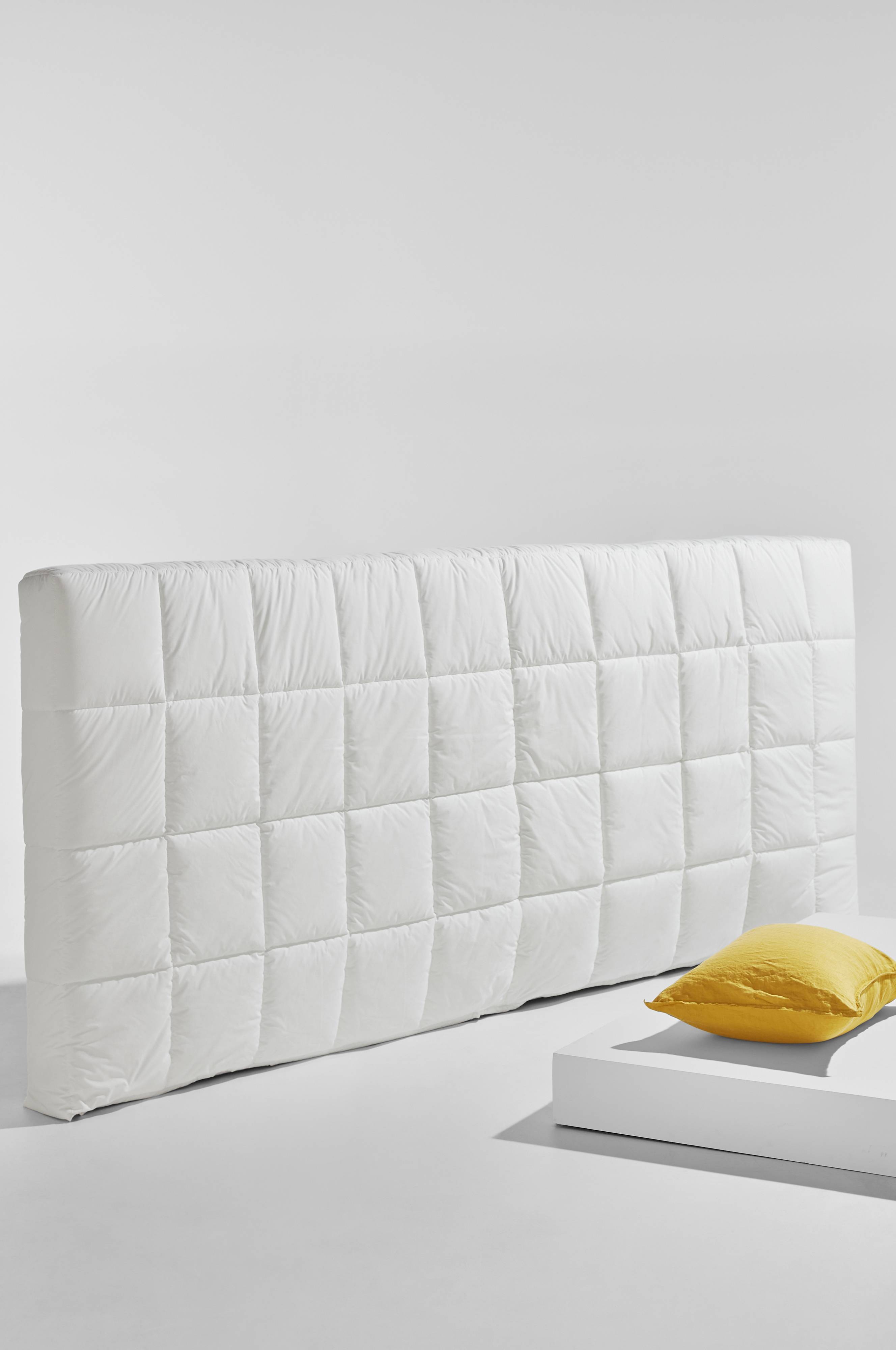 Ett överdrag i quiltat tyg som du trär över sänggaveln Basil. Det tätvävda tyget är quiltat i stora rutor, 30x30 cm. Den extra breda sänggaveln ger rummet karaktär med sitt fräscha, delikata tyg som har känslan av ett lyxigt täcke. Tyget har terylenfoder som gör sänggaveln mjukare och den quiltade effekten förstärks. Detta överdrag passar sänggavel Basil som är 300 cm bred. Basil blandar retro med det senaste.