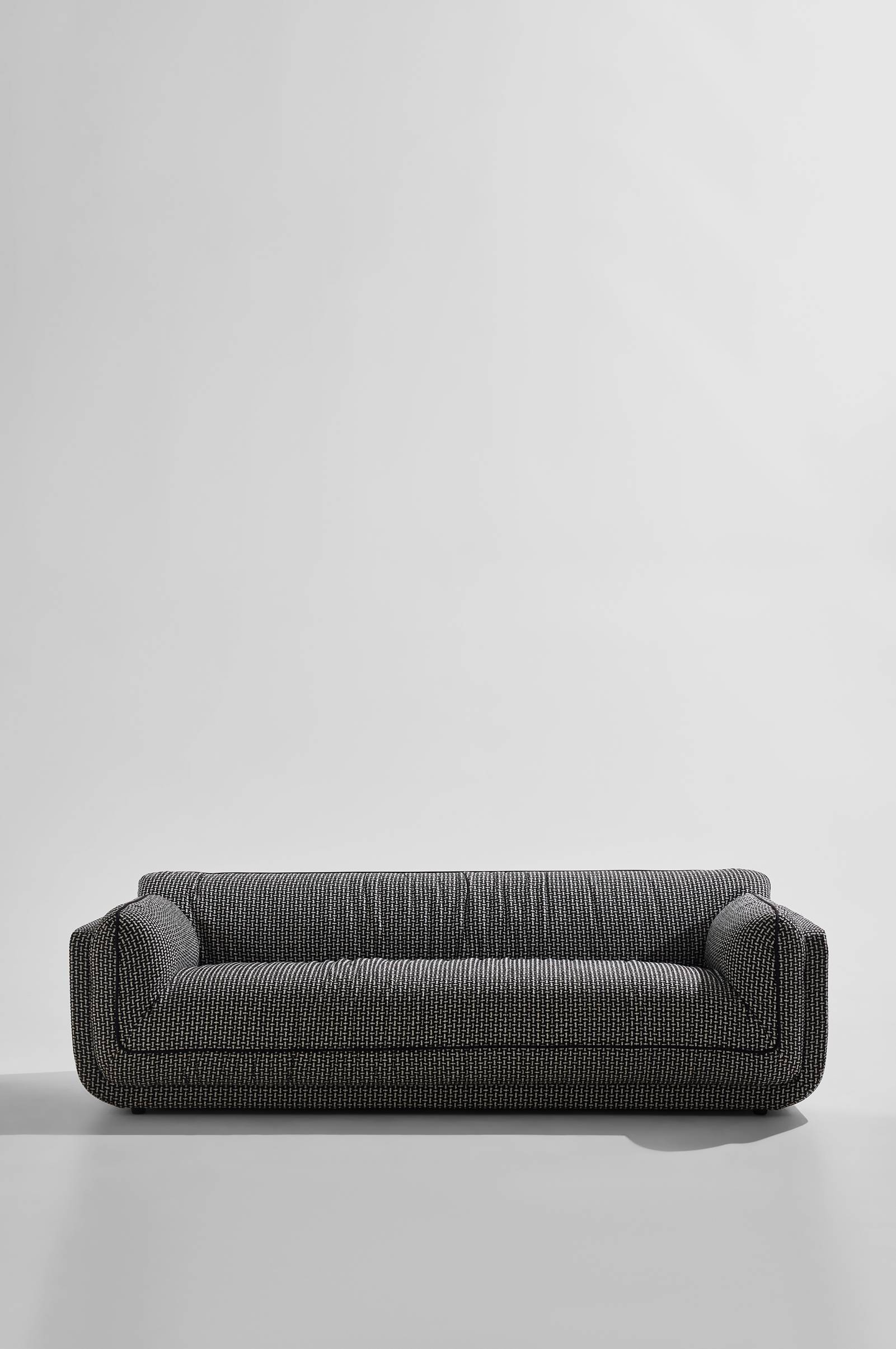 Denna soffa kombinerar ett inbjudande uttryck med en modern, avskalad design. De generösa proportionerna och den låga silhuetten skapar en avslappnad men elegant närvaro som passar både moderna interiörer och mer tidlösa miljöer.