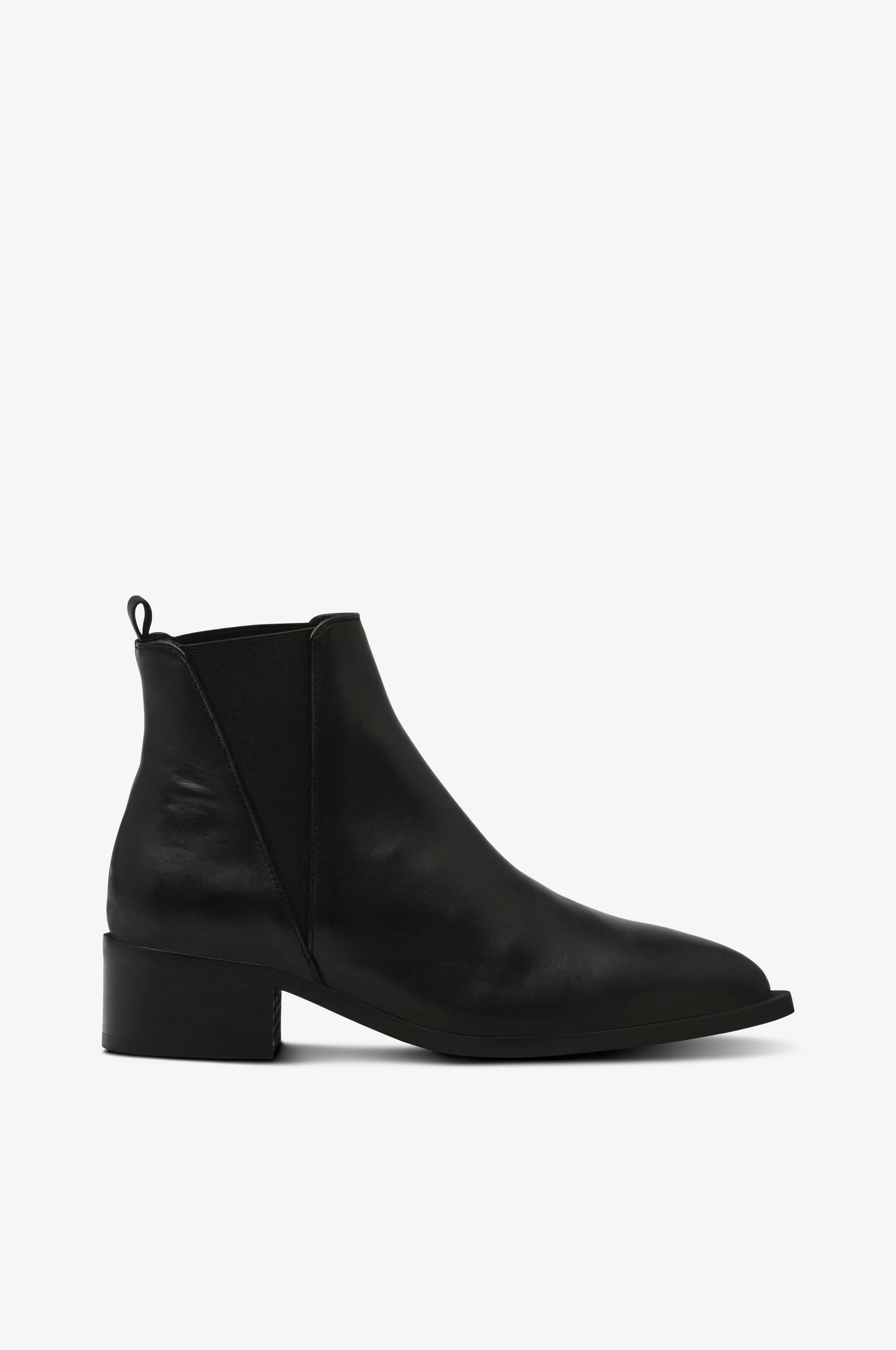 • Modell i skinn• Resårpaneler på sidorna• Draghälla bak• Spetsig tå• Klackhöjd: 4,5 cm