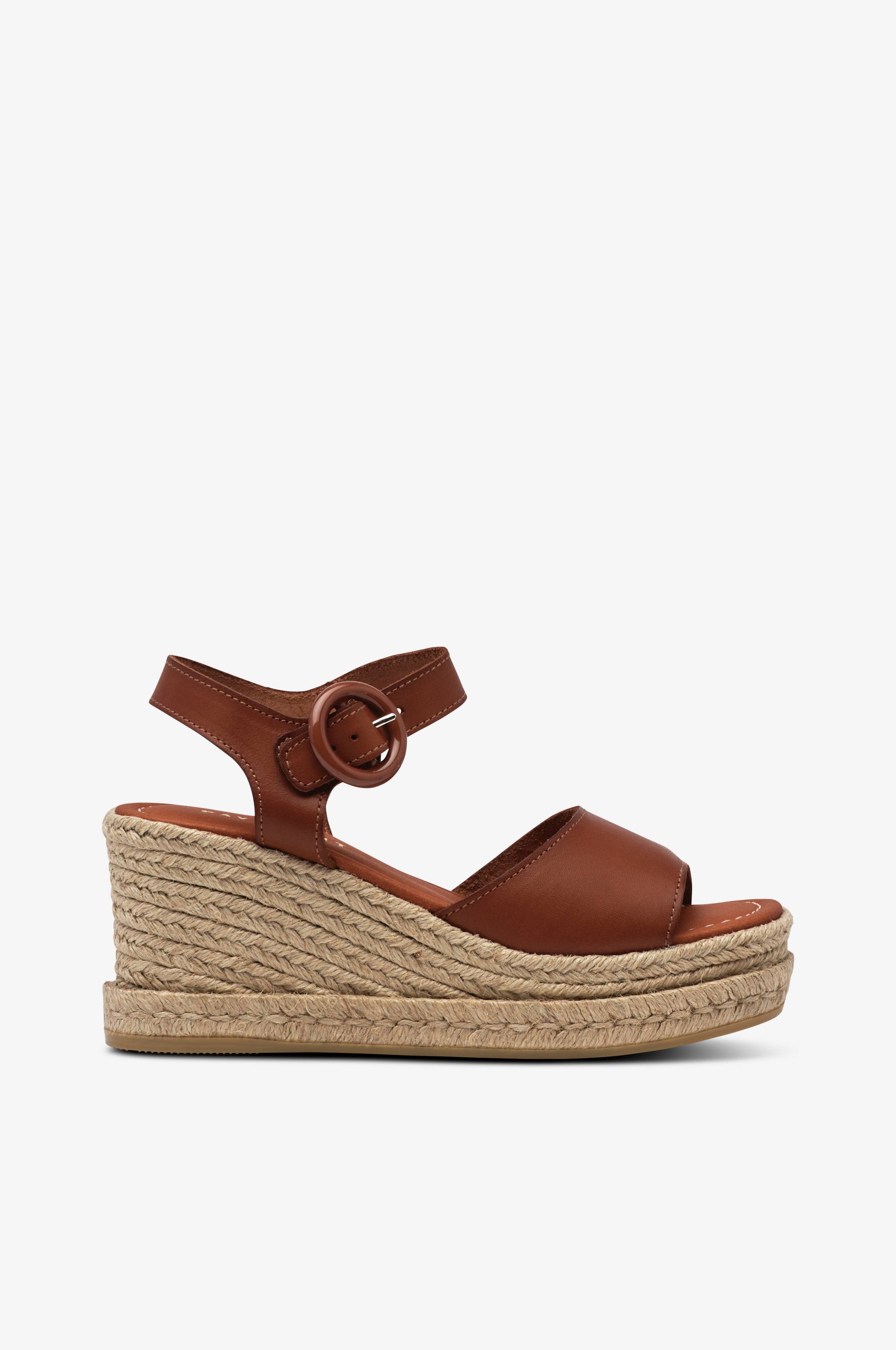 • Sandaletter i skinn• Justerbar ankelrem med plastspänne• Mjukstoppad fotbädd• Repklädd kilklack• Yttersula i gummi• Klackhöjd: 7 cm• Sulhöjd: 3,5 cm