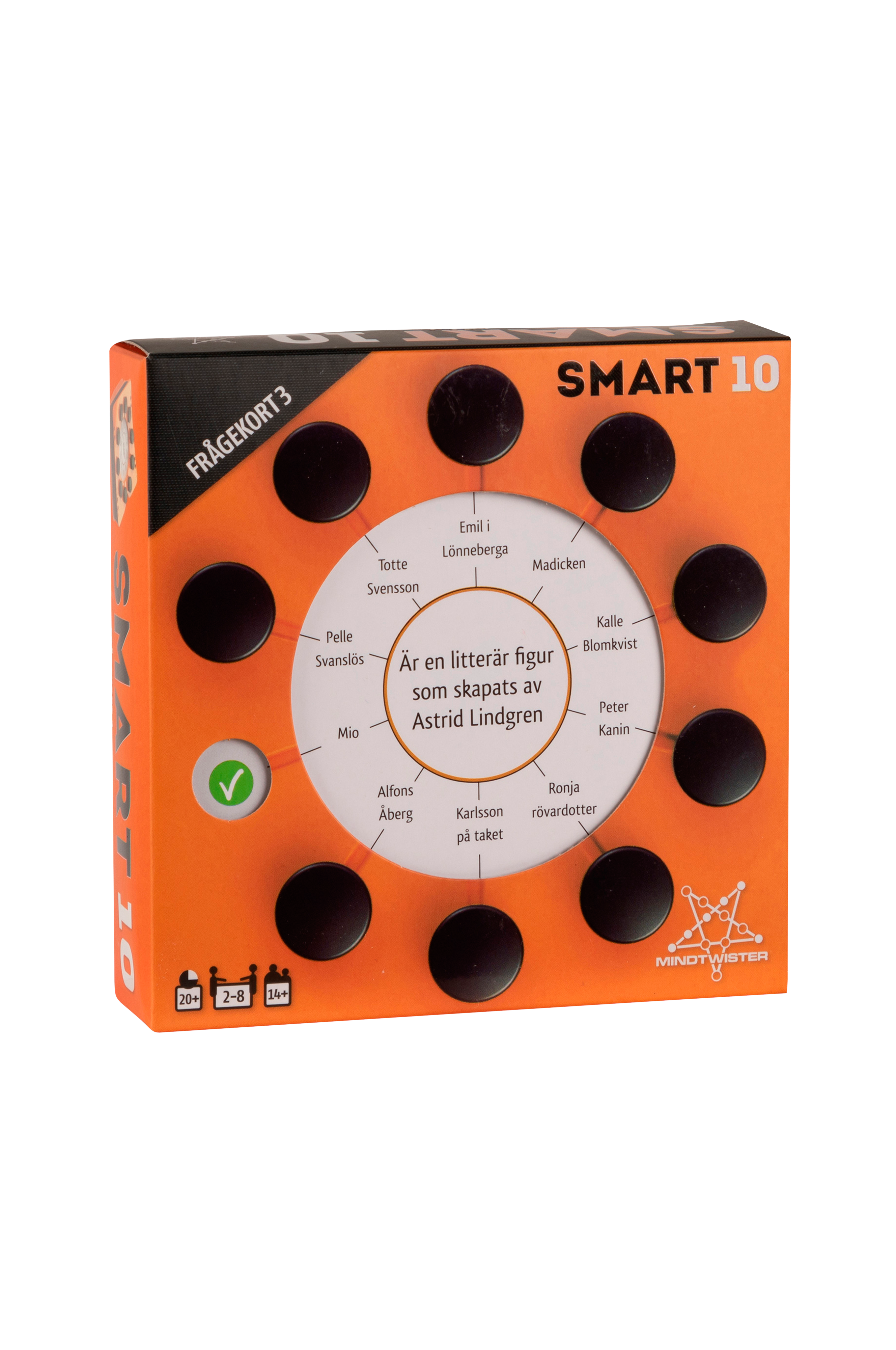 100 dubbelsidiga kort med totalt 200 nya frågor och 2000 svar. Det är bara att byta ut korten i Smartboxen från själva spelet Smart10 eller Smart10 Jr och fortsätta spela.
