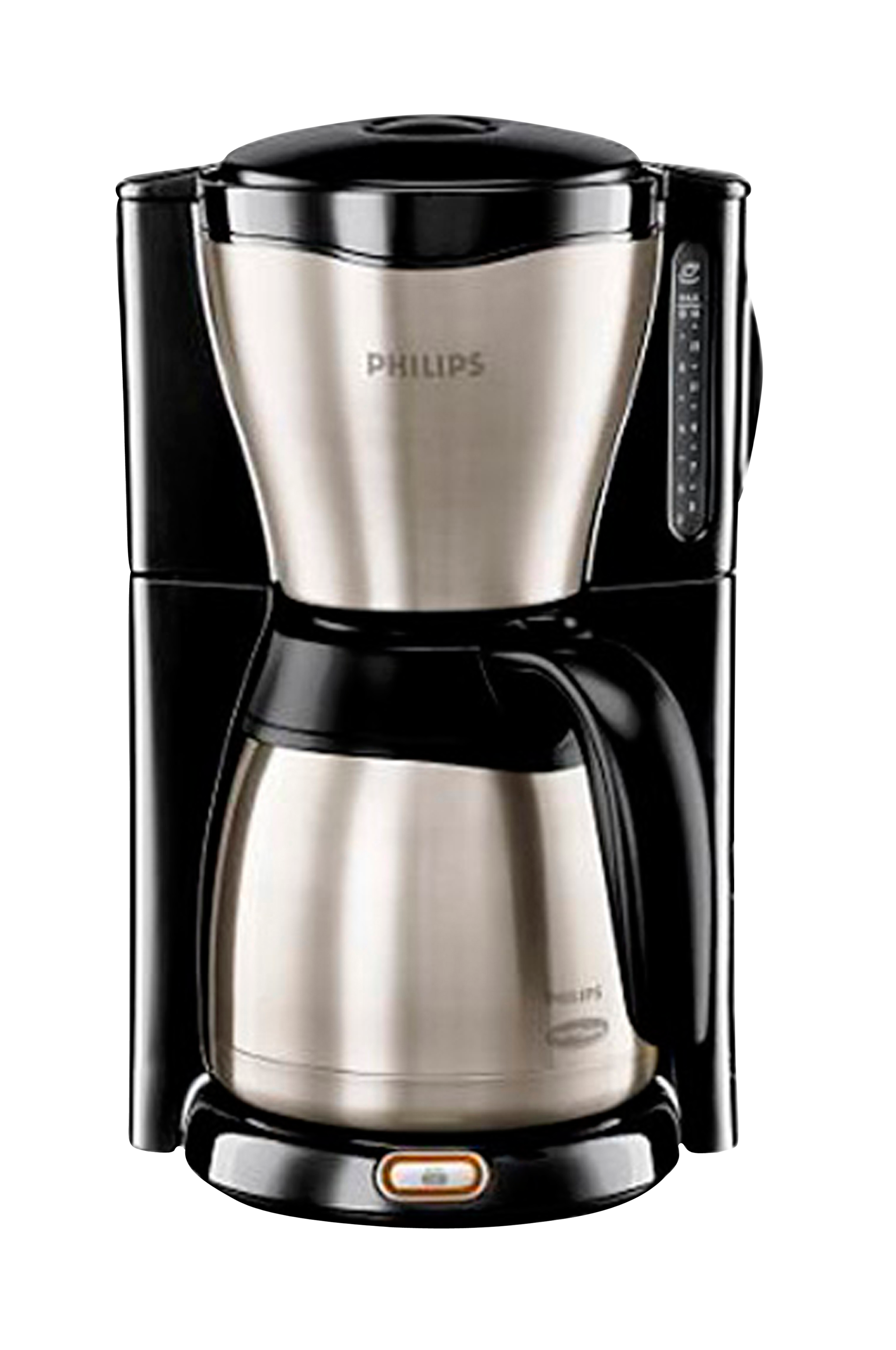 DroppstoppLöstagbar filterhållareGenomskinlig vattentankDiskmaskinssäkra delarEnkel förvaring av överflödig sladdOkrossbar kanna av rostfritt stålTermoskannaApparaten stängs av automatiskt efter bryggningen