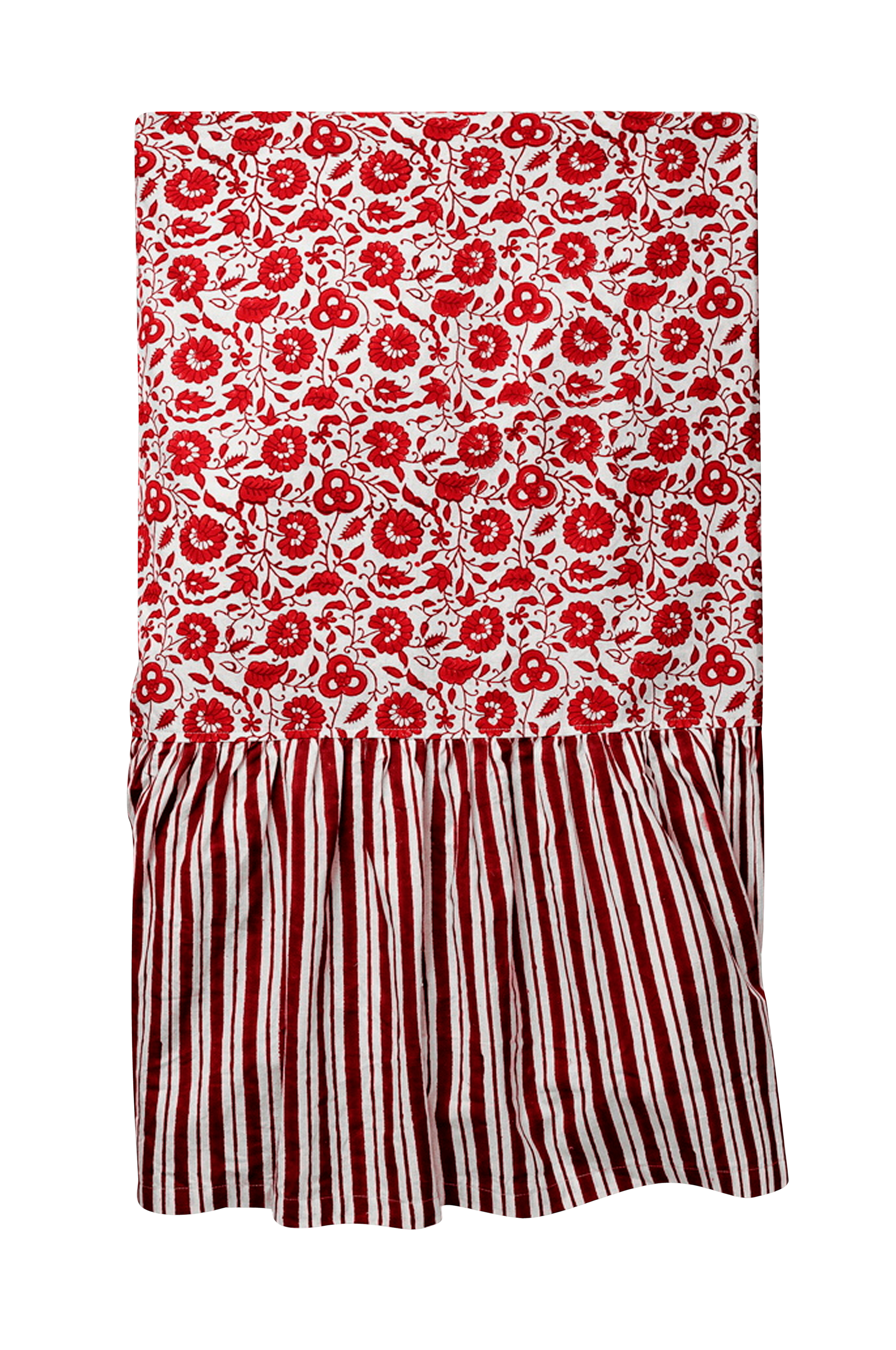 Gör ditt bord till centrum för uppmärksamheten i jul med vår festliga bordsduk, designad med en lekfull volang. Den röda bordsduken är handgjord och blocktryckt i Jaipur och är det perfekta valet för att dekorera julbordet. Den finns i två storlekar för att passa din bordsskiva, med mått som inkluderar den 36 cm långa volangen.