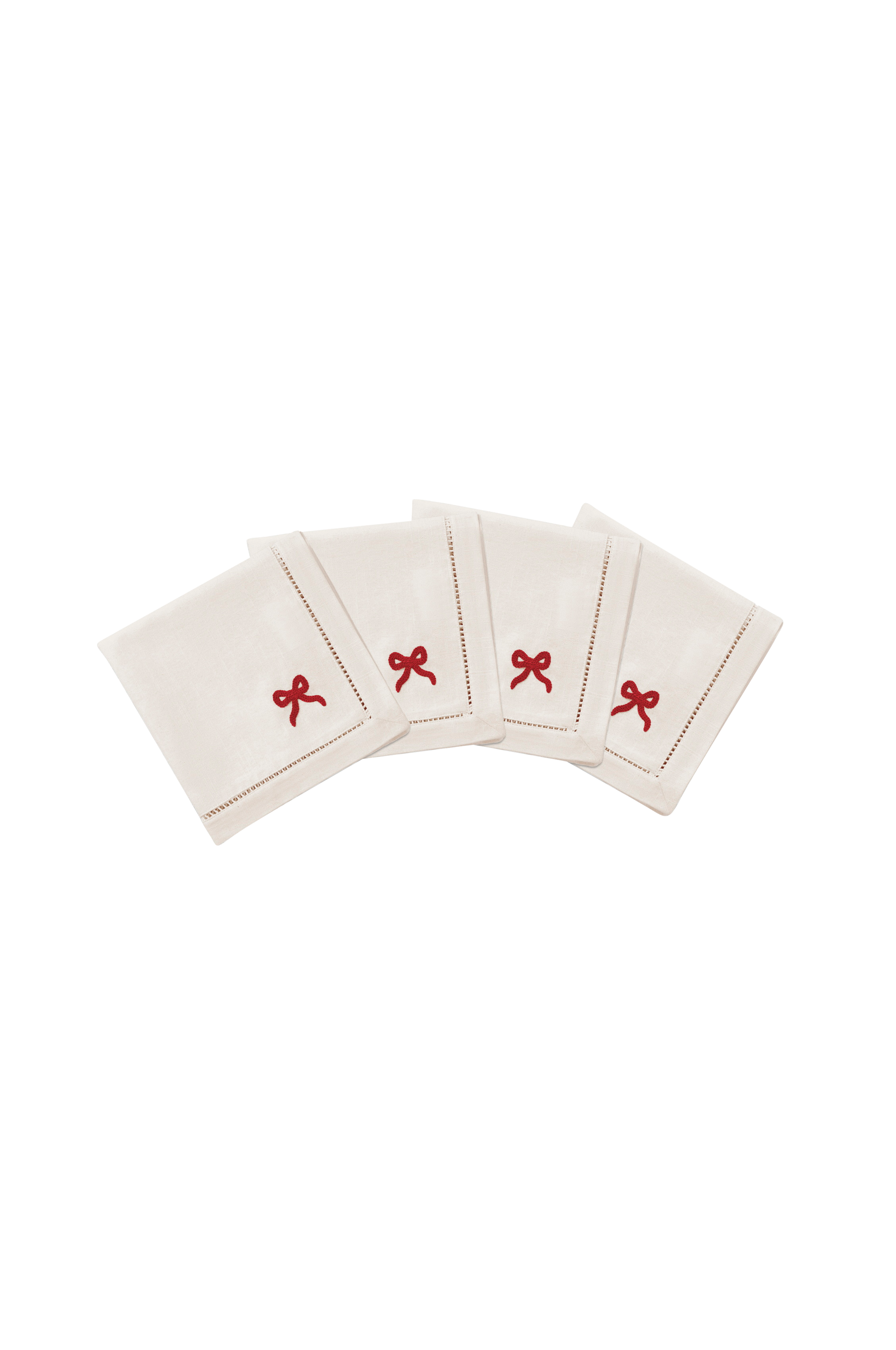 Oavsett om du är värd för en formell middagsbjudning eller avnjuter en avslappnad måltid, ger vår flirtiga men sofistikerade Bow Servett en touch av lekfull elegans till alla tillfällen. Den här vita bomullsservetten är handgjord av 100 % bomull och broderad för hand med vår ikoniska symbol Poppy bow . Servetterna säljs i en uppsättning om fyra - perfekt för att skapa en genomtänkt och charmig atmosfär runt bordet.