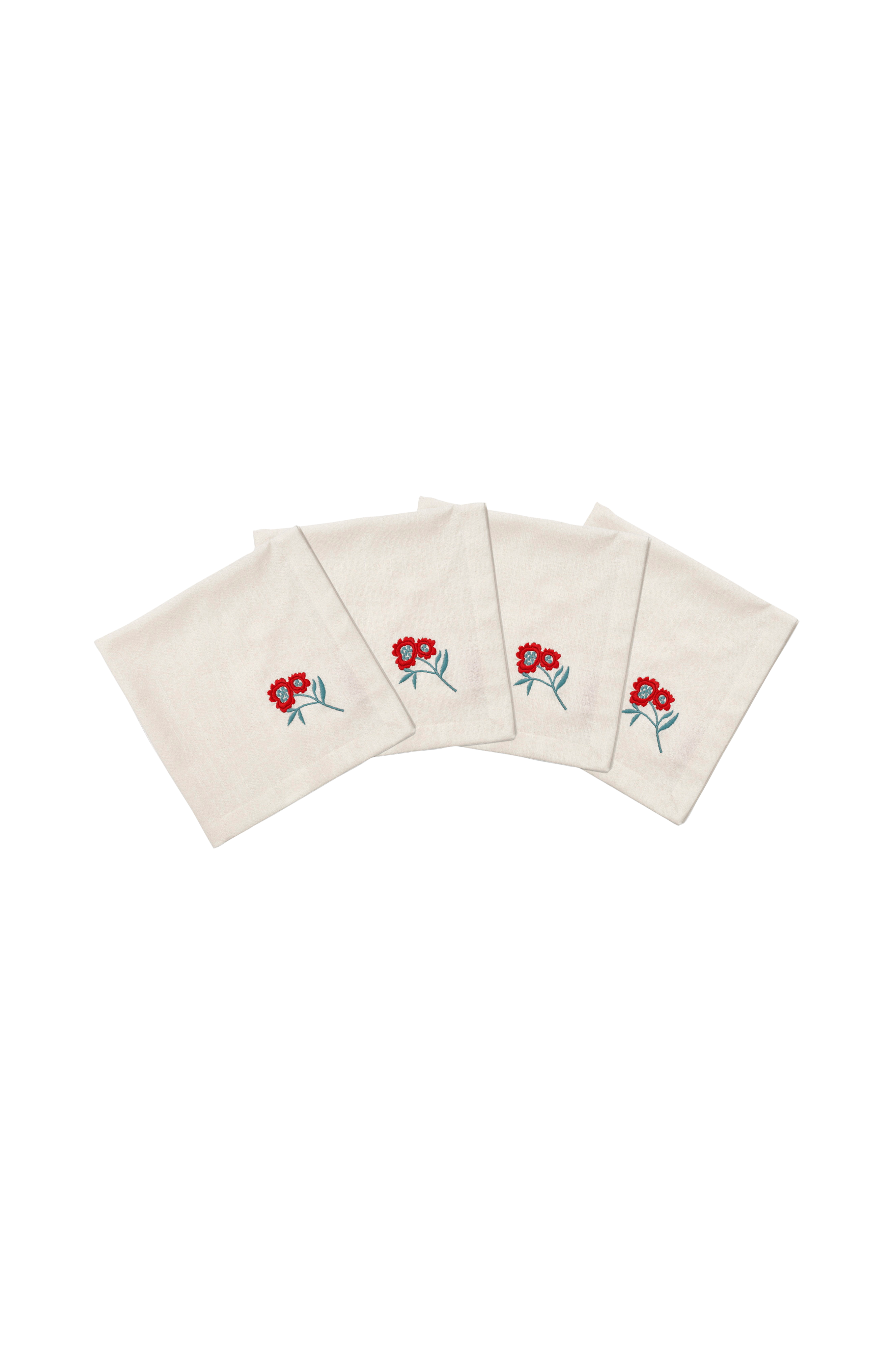 Oavsett om du är värd för en formell middagsbjudning eller avnjuter en avslappnad måltid i trädgården, ger vår flörtiga men sofistikerade Cottage Flower servett en touch av lekfull elegans till alla tillfällen. Servetten är handgjord av 100 % linne och broderad för hand med vackra blommor. Servetterna säljs i en uppsättning om fyra - perfekt för att skapa en genomtänkt och charmig atmosfär runt bordet.